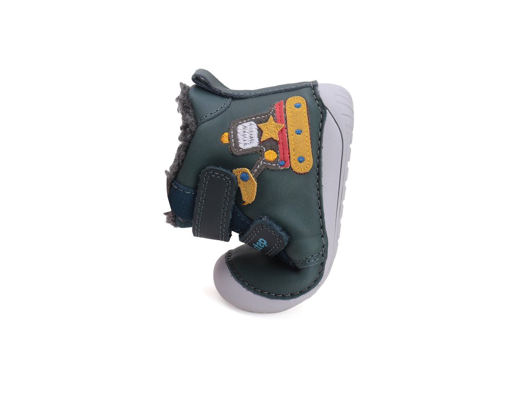 Detská zimná, kožená BARE FOOT obuv, mäkká-flexibilná podrážka pre pohodlnú chôdzu a praktické zapínanie na suchý zips. Obuv je celokožená so stielkou zateplenou kožušinou, je vyberateľná. Podrážka je lepená a aj šitá najmodernejšou 3D technológiou. Obuv D.D.Step je odľahčená, ohybná a pri prstoch širšia. *Perleťová modrá farba, pre dievčatá ...
