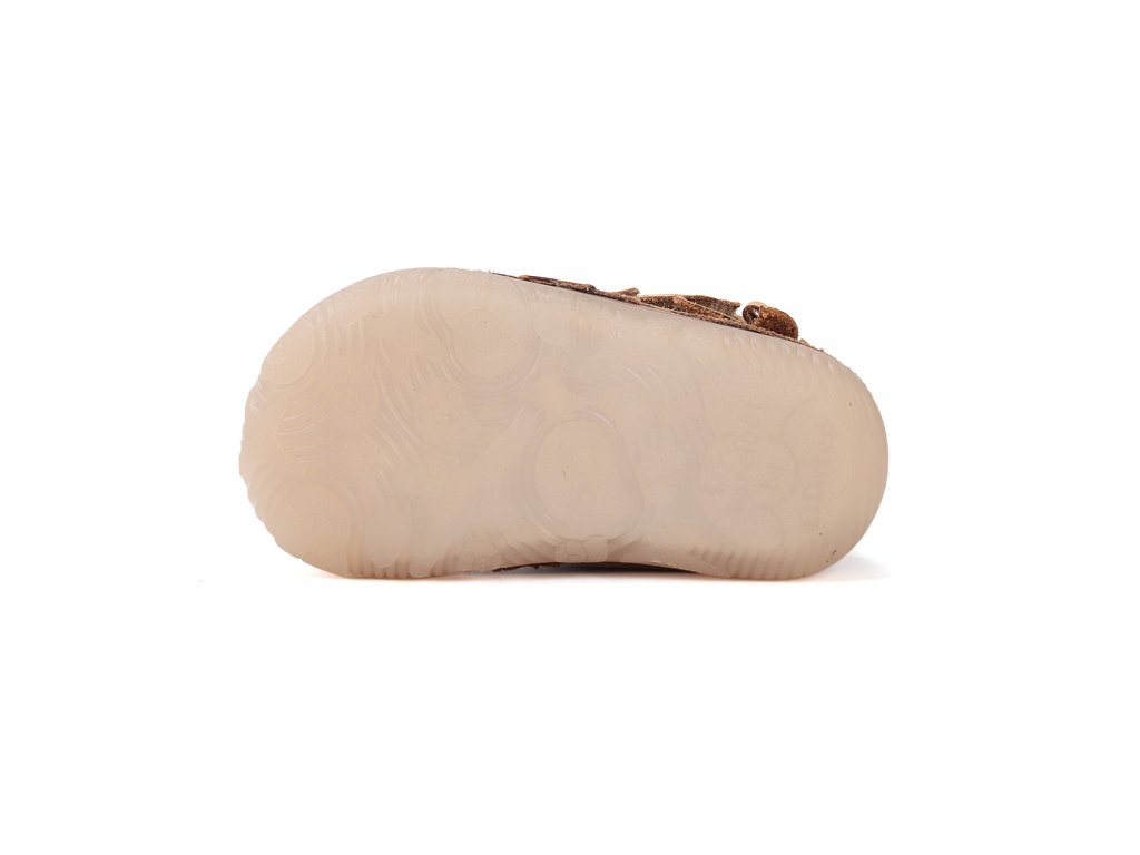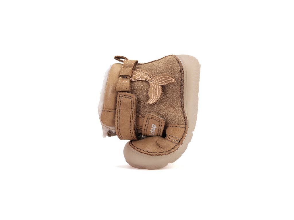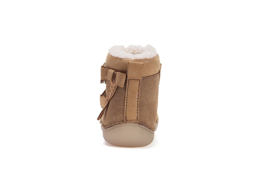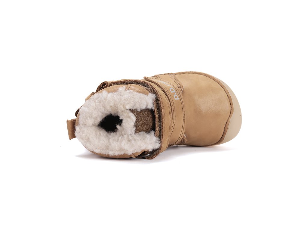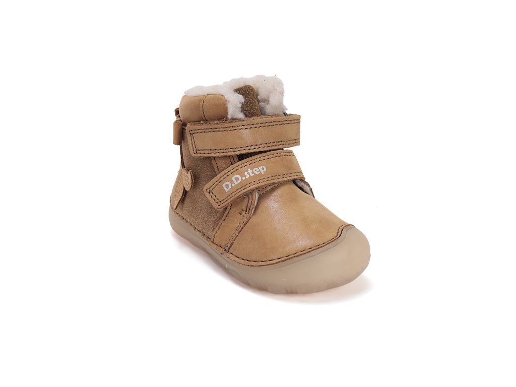Detská zimná, kožená BARE FOOT obuv, mäkká-flexibilná podrážka, praktické zapínanie na suchý zips. Obuv je celokožená, zateplená kožušinou aby pre deti bola maximálne pohodlná, stielka je vyberateľná. Podrážka je lepená a aj šitá najmodernejšou 3D technológiou. Obuv D.D.Step je odľahčená, ohybná a pri prstoch širšia. Podrážka je fluorescenčná, v tme svieti. Dĺžky stielok :