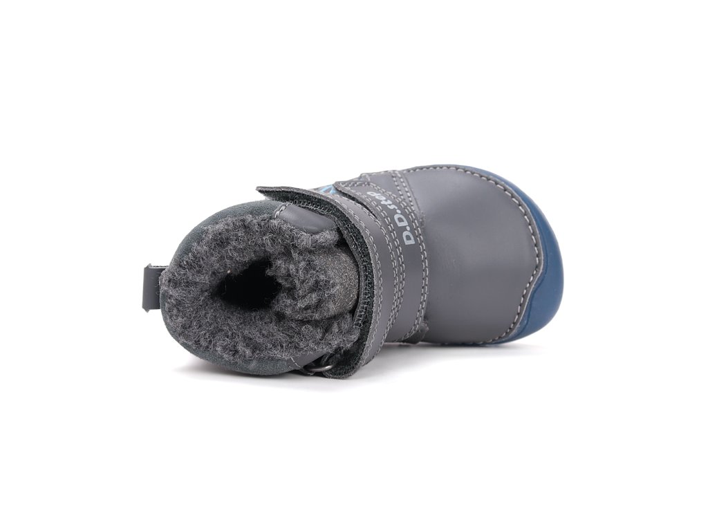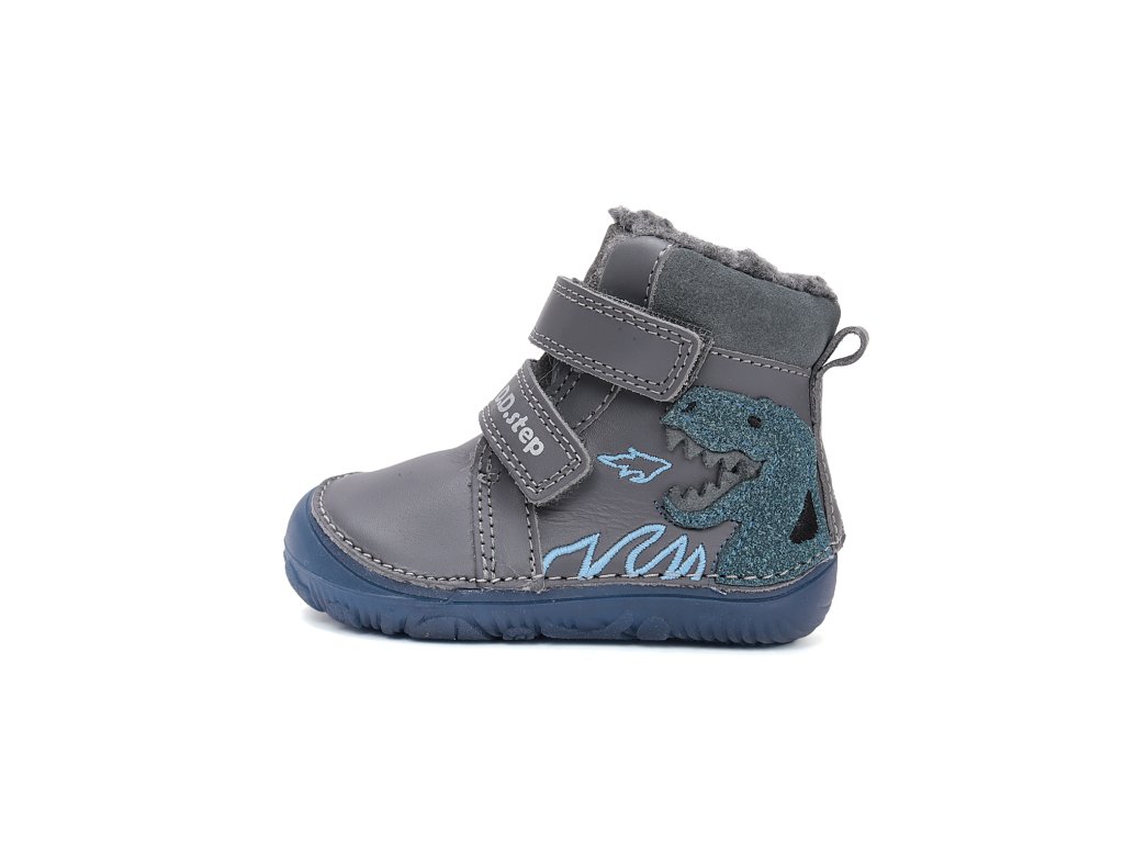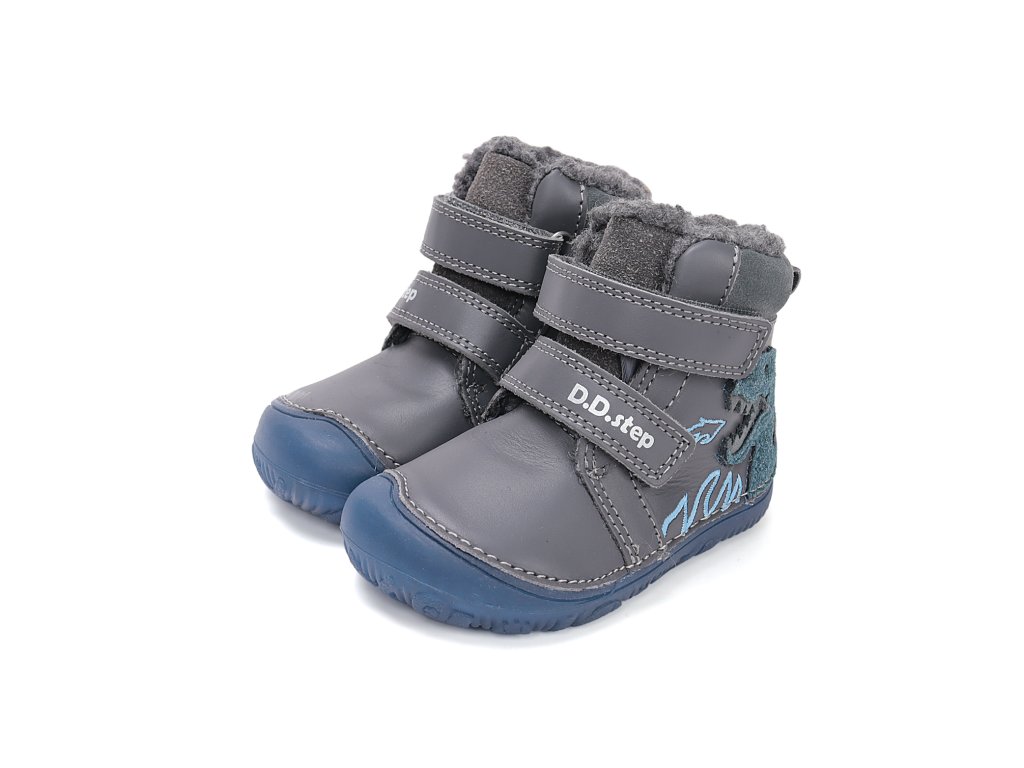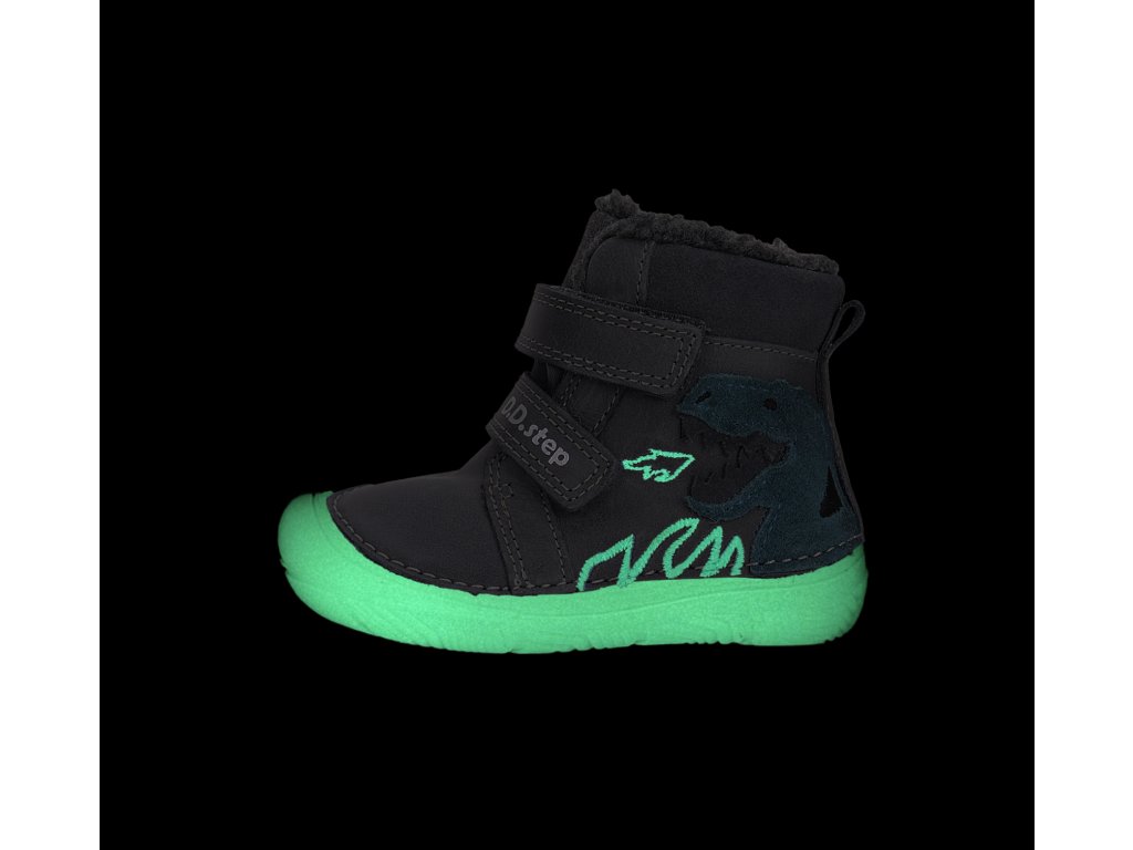 Detská zimná, kožená BARE FOOT obuv, mäkká-flexibilná podrážka, praktické zapínanie na suchý zips. Obuv je celokožená, zateplená kožušinou aby pre deti bola maximálne pohodlná, stielka je vyberateľná. Podrážka je lepená a aj šitá najmodernejšou 3D technológiou. Obuv D.D.Step je odľahčená, ohybná a pri prstoch širšia. Podrážka je fluorescenčná, v tme svieti. Dĺžky stielok :