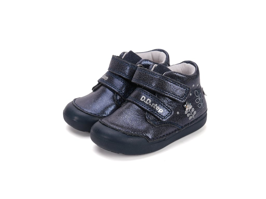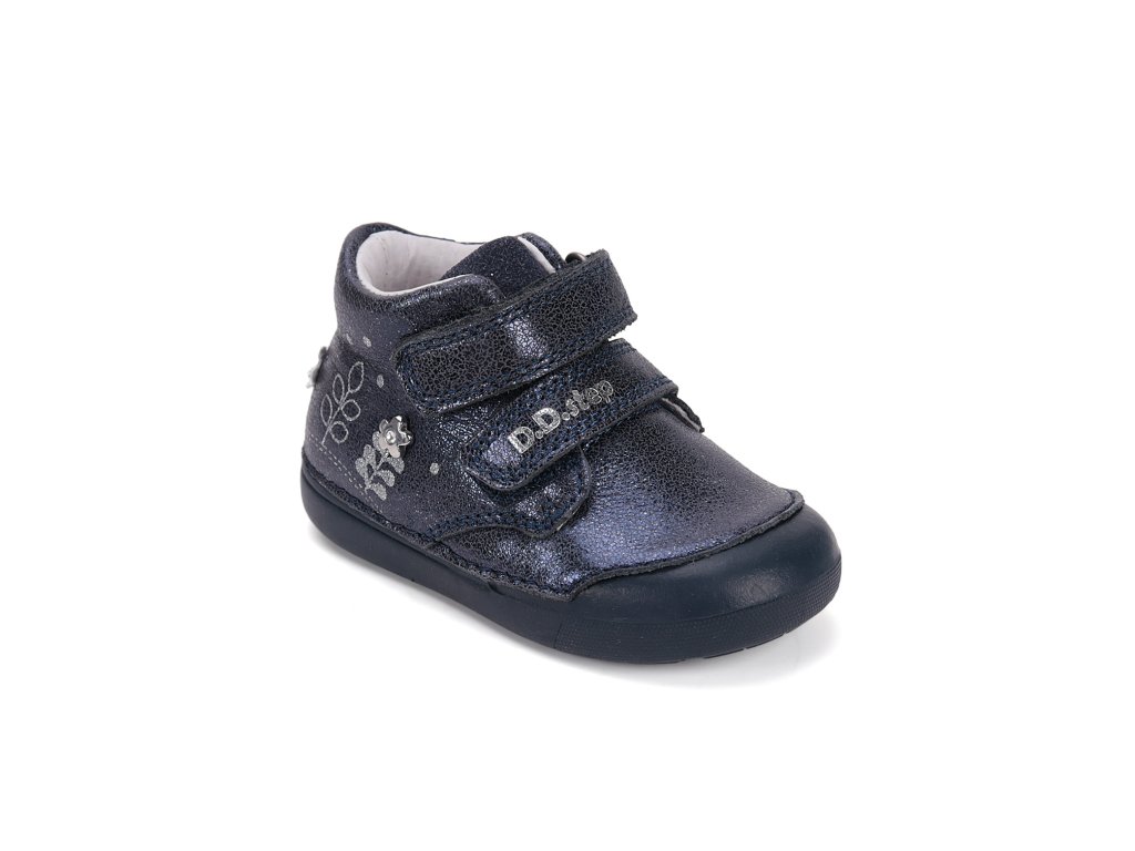 Detská kožená obuv-celorok, mäkká-flexibilná podrážka pre pohodlnú chôdzu a praktické zapínanie na suchý zips. Obuv je celokožená s koženou anatomicky tvarovanou stielkou z mäkčenej kože najvyššej kvality aby bola pre deti maximálne pohodlná a je vyberateľná. Podrážka je lepená a aj šitá najmodernejšou 3D technológiou. Obuv D.D.Step je odľahčená, ohybná a pri prstoch širšia , pri prstoch ohybná - flexi system. Novinkou pri D.D.Step obuvi je podrážka so zmesou trstiny (vidieť ako jemné zrná vo farbe podrážky) pre ekologickejšiu výrobu a rozložiteľnosť pri recyklácií.
