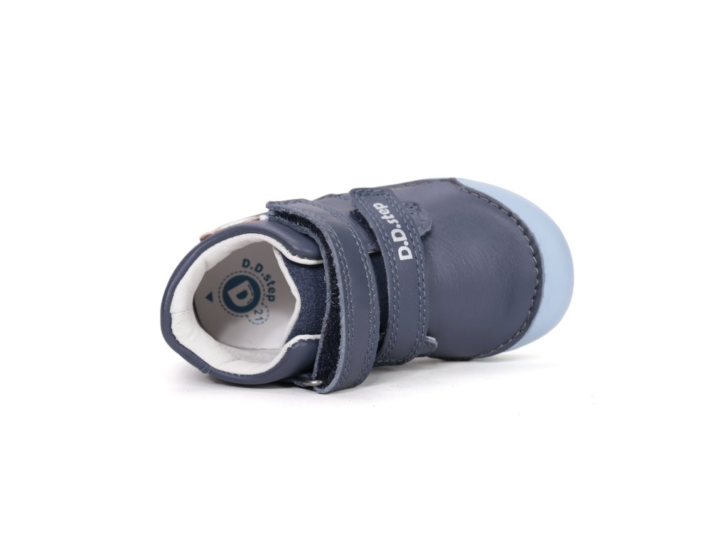 Detská kožená obuv-celorok, mäkká-flexibilná podrážka pre pohodlnú chôdzu a praktické zapínanie na suchý zips. Obuv je celokožená s koženou anatomicky tvarovanou stielkou z mäkčenej kože najvyššej kvality aby bola pre deti maximálne pohodlná a je vyberateľná. Podrážka je lepená a aj šitá najmodernejšou 3D technológiou. Obuv D.D.Step je odľahčená, ohybná a pri prstoch širšia , pri prstoch ohybná - flexi system. Novinkou pri D.D.Step obuvi je podrážka so zmesou trstiny (vidieť ako jemné zrná vo farbe podrážky) pre ekologickejšiu výrobu a rozložiteľnosť pri recyklácií.