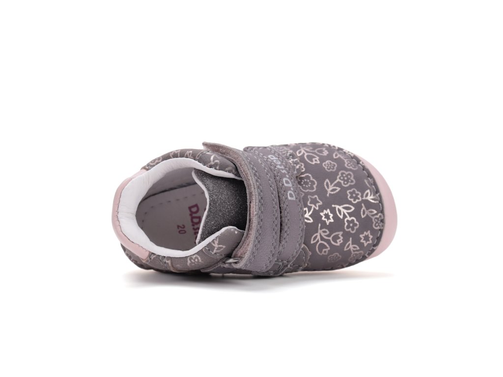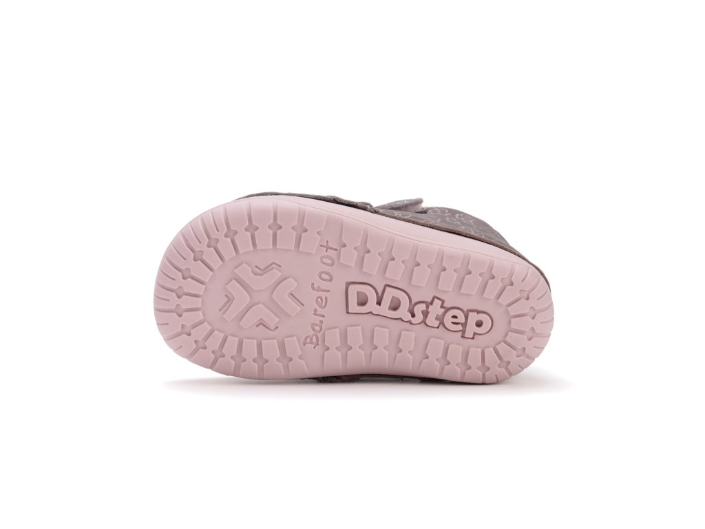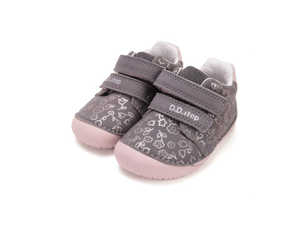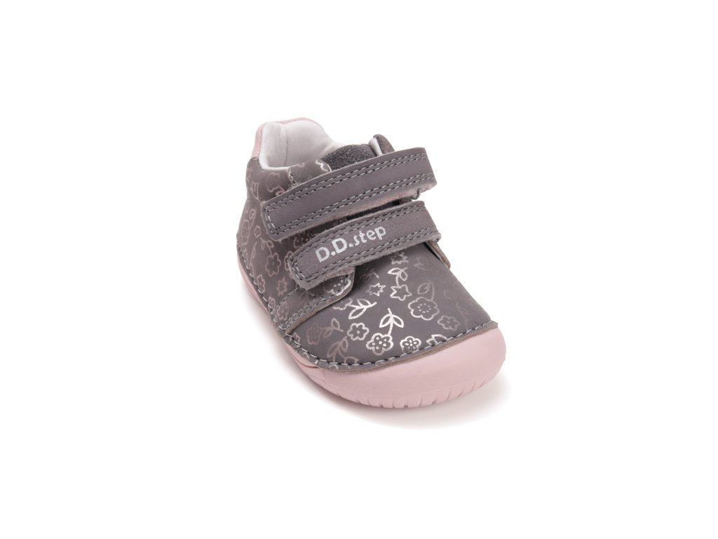 Detská kožená obuv-celorok, mäkká-flexibilná podrážka pre pohodlnú chôdzu a praktické zapínanie na suchý zips. Obuv je celokožená s koženou stielkou z mäkčenej kože najvyššej kvality aby bola pre deti maximálne pohodlná a je vyberateľná. Podrážka je lepená a aj šitá najmodernejšou 3D technológiou. Obuv D.D.Step je odľahčená, ohybná a pri prstoch širšia , bare foot obuv. Novinkou pri D.D.Step obuvi je podrážka so zmesou trstiny (vidieť ako jemné zrná vo farbe podrážky) pre ekologickejšiu výrobu a rozložiteľnosť pri recyklácií.