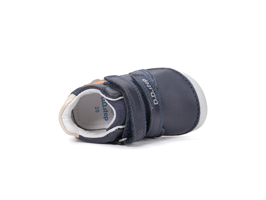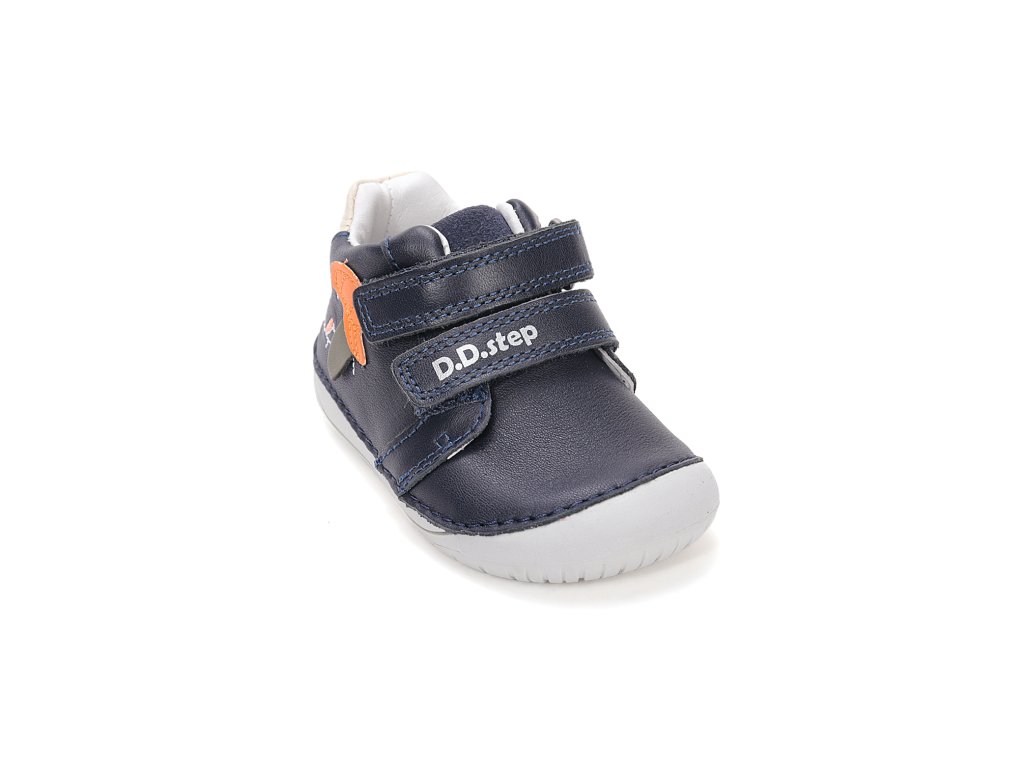 Detská kožená obuv-celorok, mäkká-flexibilná podrážka pre pohodlnú chôdzu a praktické zapínanie na suchý zips. Obuv je celokožená s koženou stielkou z mäkčenej kože najvyššej kvality aby bola pre deti maximálne pohodlná a je vyberateľná. Podrážka je lepená a aj šitá najmodernejšou 3D technológiou. Obuv D.D.Step je odľahčená, ohybná a pri prstoch širšia , bare foot obuv. Novinkou pri D.D.Step obuvi je podrážka so zmesou trstiny (vidieť ako jemné zrná vo farbe podrážky) pre ekologickejšiu výrobu a rozložiteľnosť pri recyklácií.