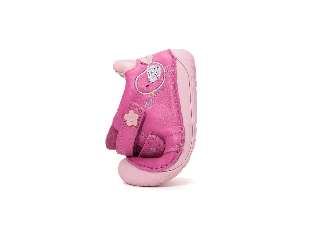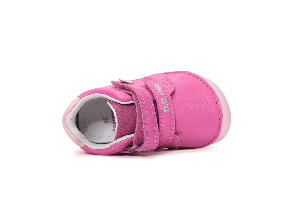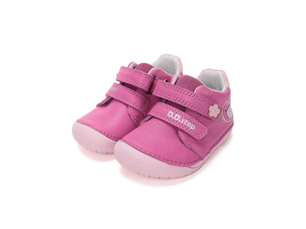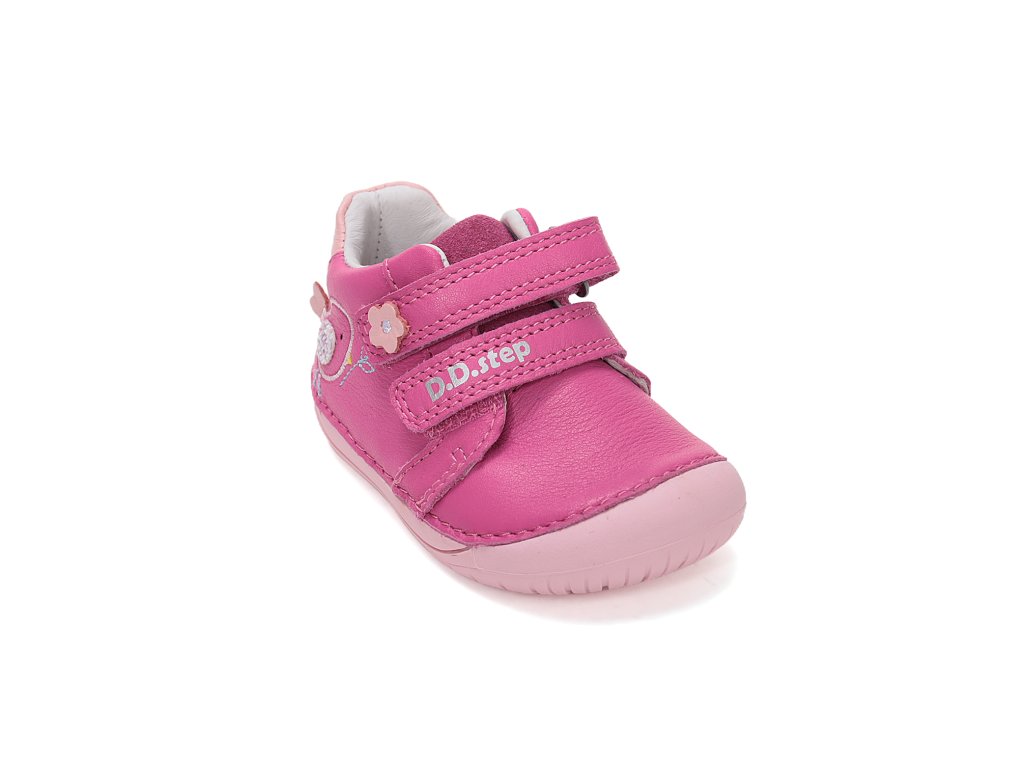 Detská kožená obuv-celorok, mäkká-flexibilná podrážka pre pohodlnú chôdzu a praktické zapínanie na suchý zips. Obuv je celokožená s koženou stielkou z mäkčenej kože najvyššej kvality aby bola pre deti maximálne pohodlná a je vyberateľná. Podrážka je lepená a aj šitá najmodernejšou 3D technológiou. Obuv D.D.Step je odľahčená, ohybná a pri prstoch širšia , bare foot obuv. Novinkou pri D.D.Step obuvi je podrážka so zmesou trstiny (vidieť ako jemné zrná vo farbe podrážky) pre ekologickejšiu výrobu a rozložiteľnosť pri recyklácií.