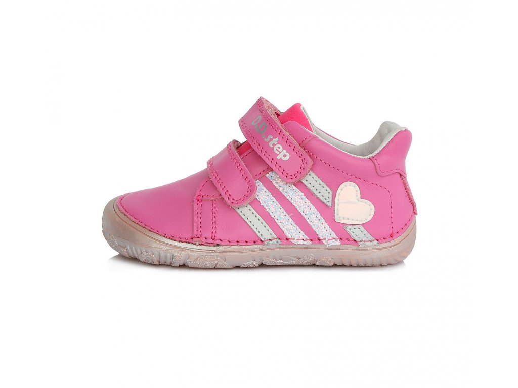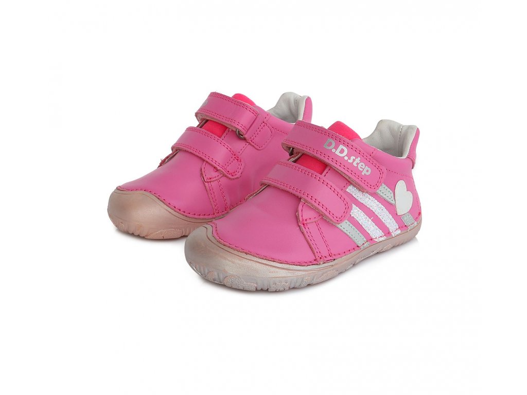 Detská kožená obuv-celorok, mäkká-flexibilná podrážka pre pohodlnú chôdzu a praktické zapínanie na suchý zips. Obuv je celokožená s koženou anatomicky tvarovanou stielkou z mäkkčenej kože najvyššej kvality aby bola pre deti maximálne pohodlná a je vyberateľná. Podrážka je lepená a aj šitá najmodernejšou 3D technológiou. Obuv D.D.Step je odľahčená, ohybná a pri prstoch širšia , bare foot obuv. Dľžky stielok: