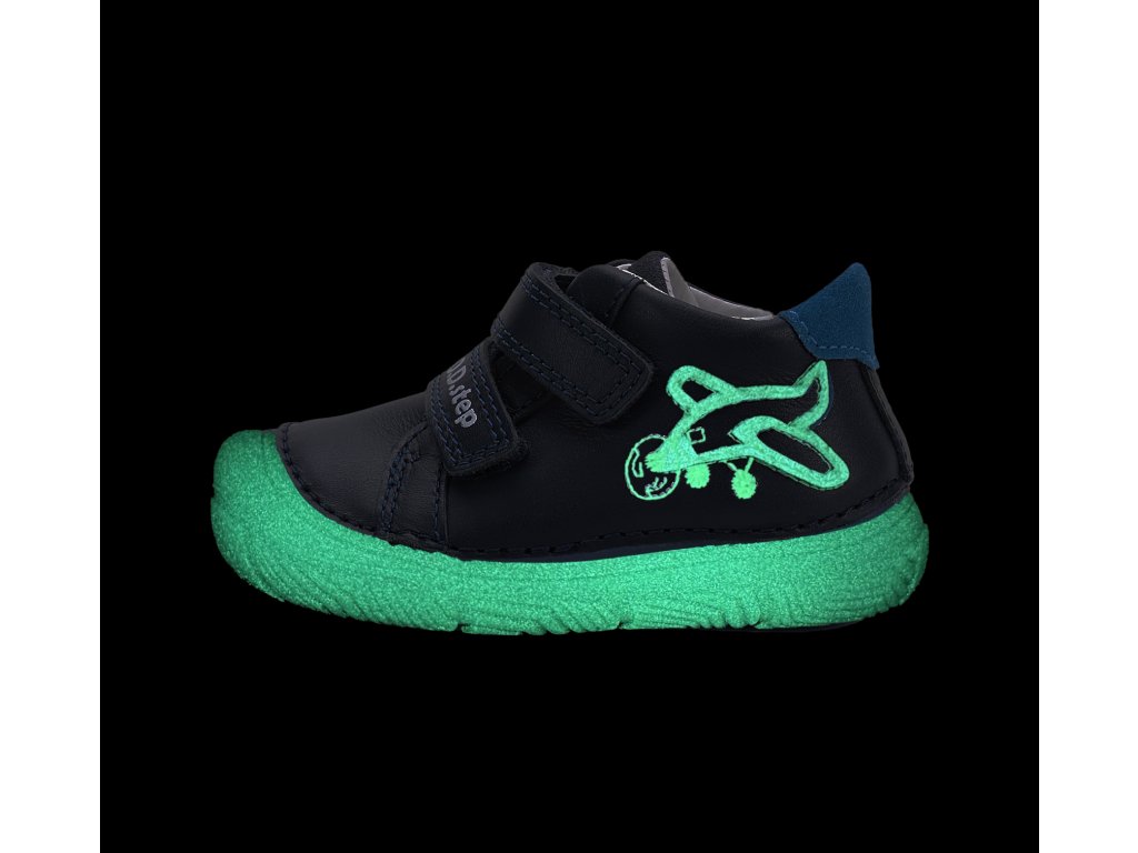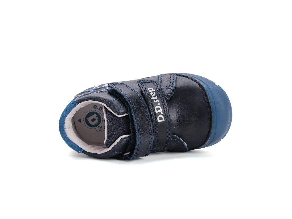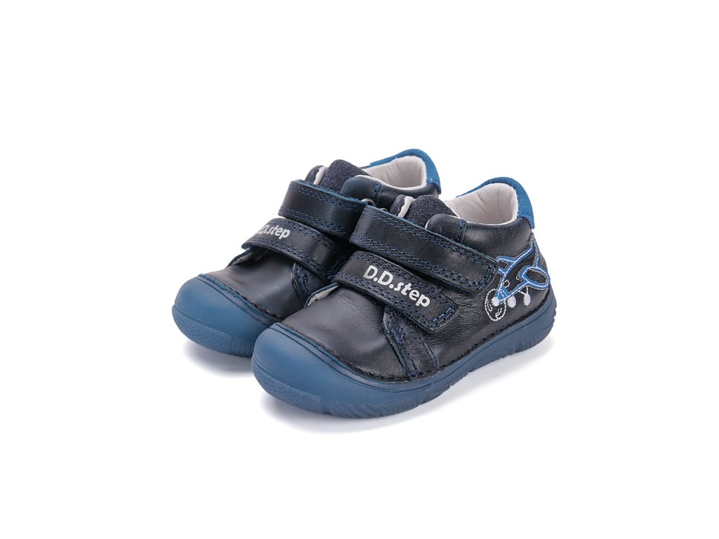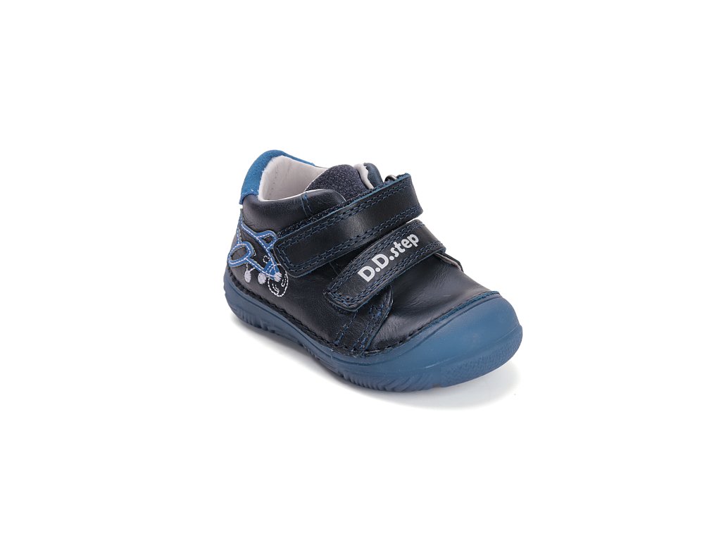 Detská kožená obuv-celorok, mäkká-flexibilná podrážka pre pohodlnú chôdzu a praktické zapínanie na suchý zips. Obuv je celokožená s koženou anatomicky tvarovanou stielkou z mäkčenej kože najvyššej kvality aby bola pre deti maximálne pohodlná a je vyberateľná. Podrážka je lepená a aj šitá najmodernejšou 3D technológiou. Obuv D.D.Step je odľahčená, ohybná a pri prstoch širšia a ohybná - flexi system. Novinkou pri D.D.Step obuvi je podrážka so zmesou trstiny (vidieť ako jemné zrná vo farbe podrážky) pre ekologickejšiu výrobu a rozložiteľnosť pri recyklácii. Podrážka je fluorescenčná, cez deň absorbuje slnečné svetlo a v tme svieti.