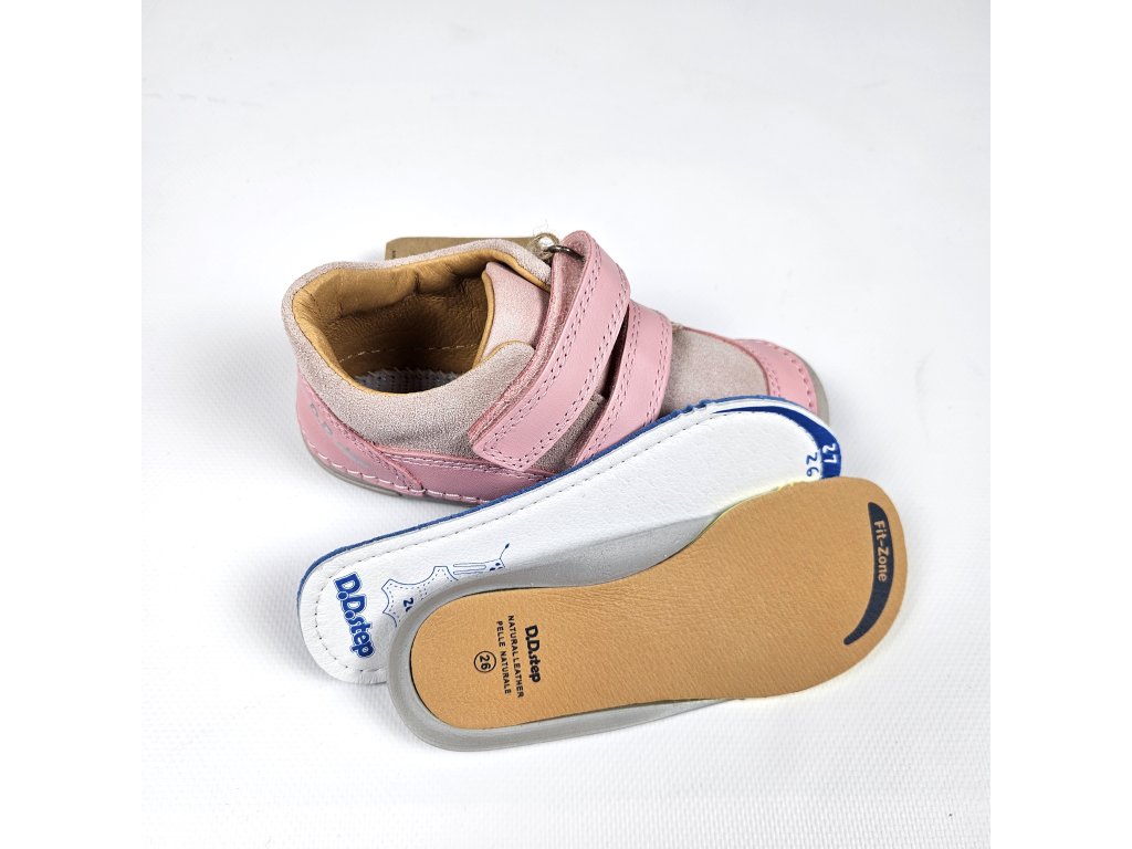 Detská kožená obuv ako alternatíva ku klasickej barefootovej obuvi. Oproti klasickej barefootovej obuvi má spevnenú pätu ale podrážka je mäkká, ohybná a pri prstoch širšia. K obuvi je pribalená aj barefoot stielka ale aj stielka s podporou klenby. Je to už na osobnej voľbe rodiča ktorú použije. Obe sú kožené.
