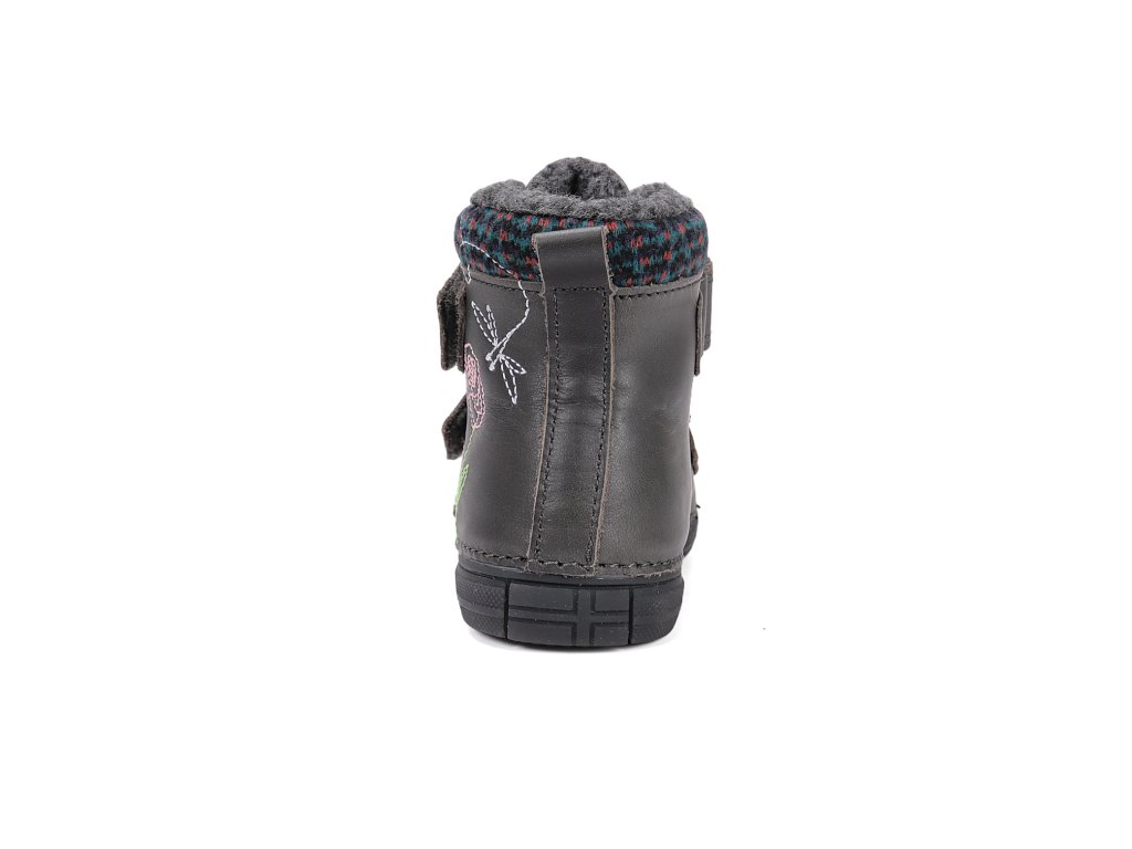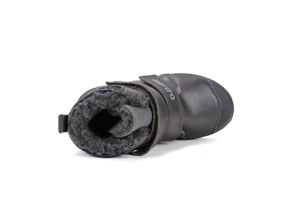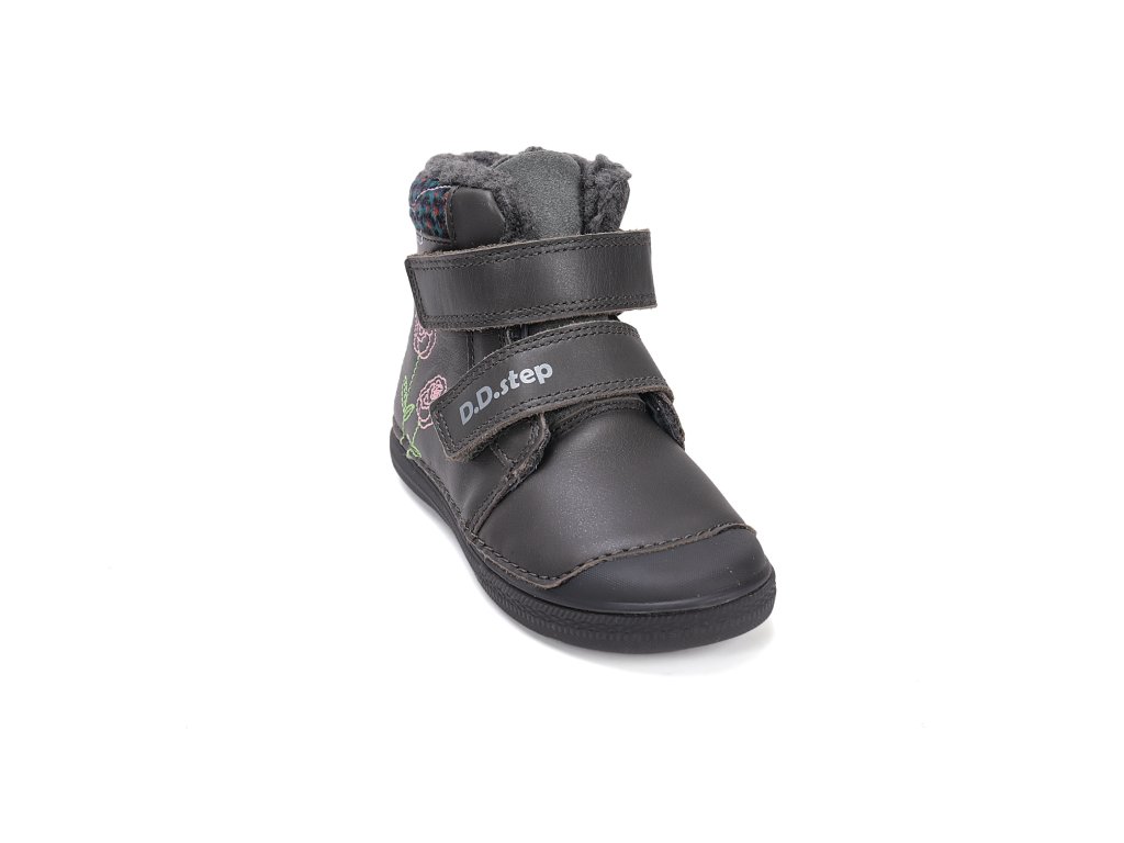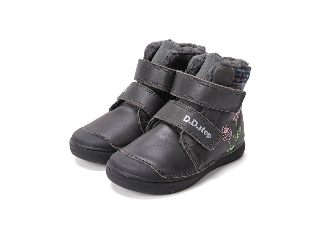 Detská zimná, kožená obuv, flexibilná podrážka pre pohodlnú chôdzu a praktické zapínanie na suchý zips. Obuv je celokožená s anatomicky tvarovanou stielkou zateplená kožušinou aby pre deti bola maximálne pohodlná a je vyberateľná. Podrážka je lepená a aj šitá najmodernejšou 3D technológiou. Stielka aj motív na boku obuvi je z fluorescenčného materiálu. Obuv D.D.Step je odľahčená, ohybná a pri prstoch širšia.