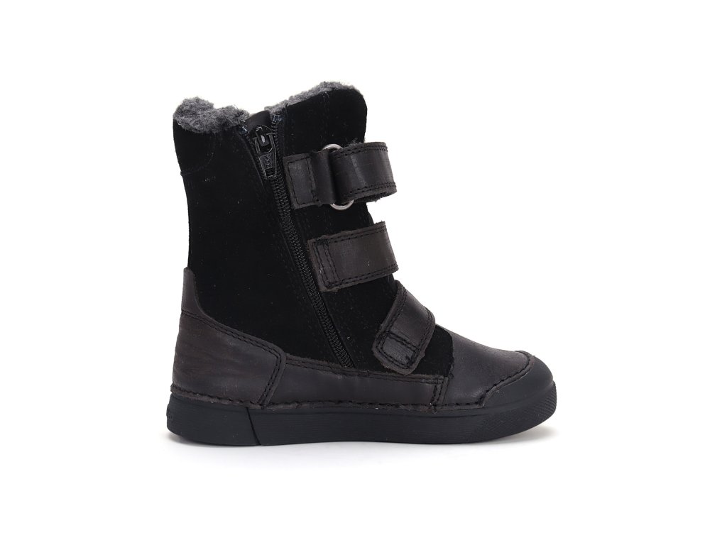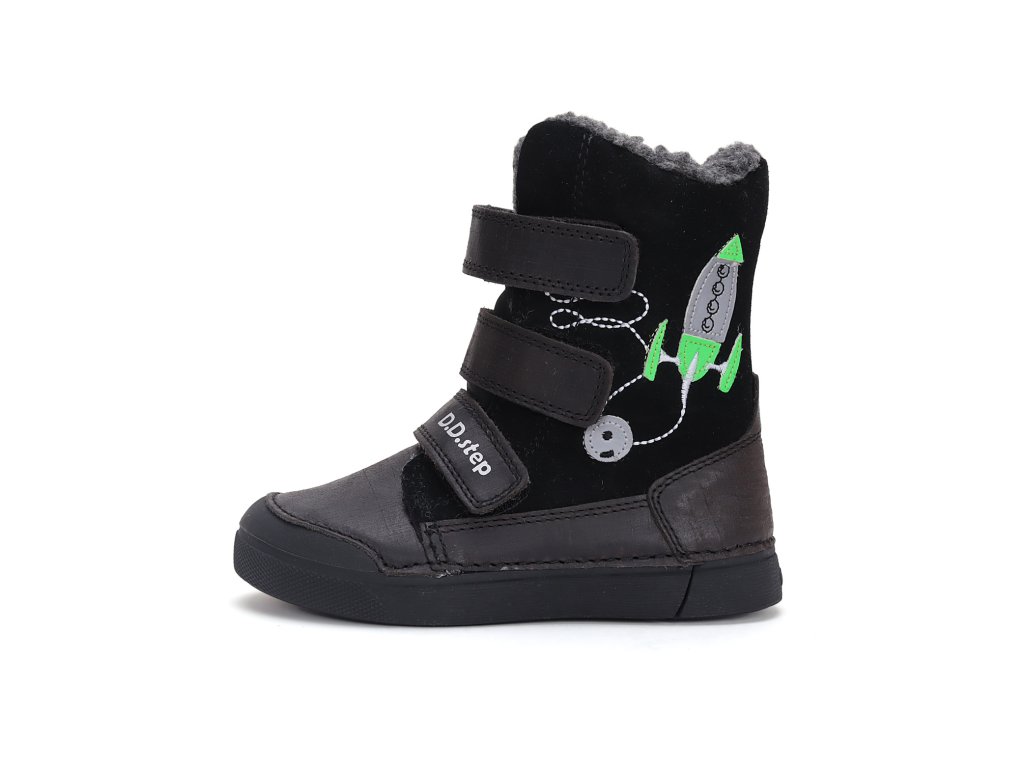 Detská zimná obuv, mäkká-flexibilná podrážka - Flexi system, praktické zapínanie na suchý zips a zároveň klasický zips na boku na uľahčenie obutia. Obuv je celokožená, zateplená kožušinou aby pre deti bola maximálne pohodlná, stielka je vyberateľná. Podrážka je lepená a aj šitá najmodernejšou 3D technológiou. Obuv D.D.Step je odľahčená, ohybná a pri prstoch širšia.