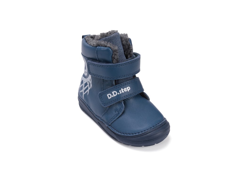Detská kožená zimná obuv, mäkká-flexibilná podrážka pre pohodlnú chôdzu a praktické zapínanie na suchý zips. Obuv je celokožená s anatomicky tvarovanou stielkou s kožušinou aby bola pre deti pohodlná, teplá a je vyberateľná. Podrážka je lepená a aj šitá najmodernejšou 3D technológiou. Obuv D.D.Step je odľahčená, pri prstoch širšia, ohybná - flexi system pre správny vývoj detských nožičiek.