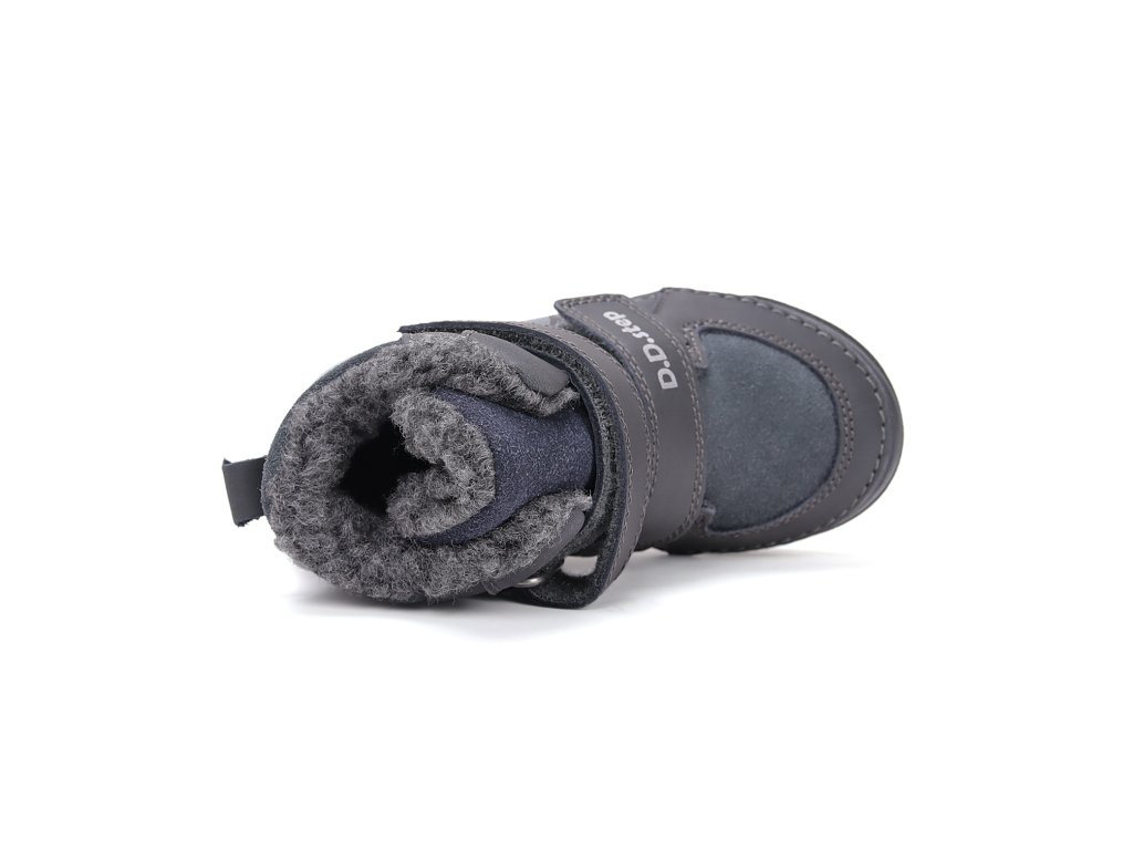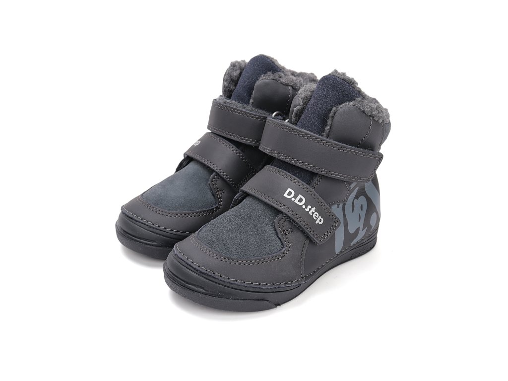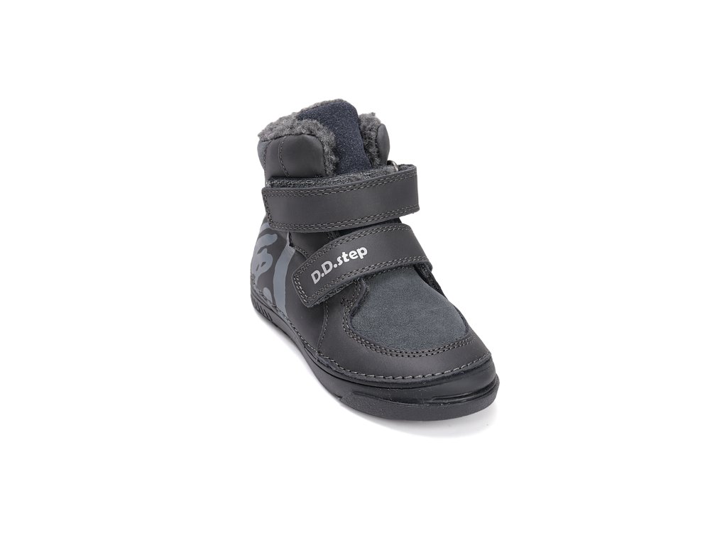 Detská zimná, kožená obuv, flexibilná podrážka pre pohodlnú chôdzu a praktické zapínanie na suchý zips. Obuv je celokožená s anatomicky tvarovanou stielkou zateplená kožušinou aby pre deti bola maximálne pohodlná a je vyberateľná. Podrážka je lepená a aj šitá najmodernejšou 3D technológiou. Obuv D.D.Step je odľahčená, ohybná a pri prstoch širšia. Dĺžky stielok:
