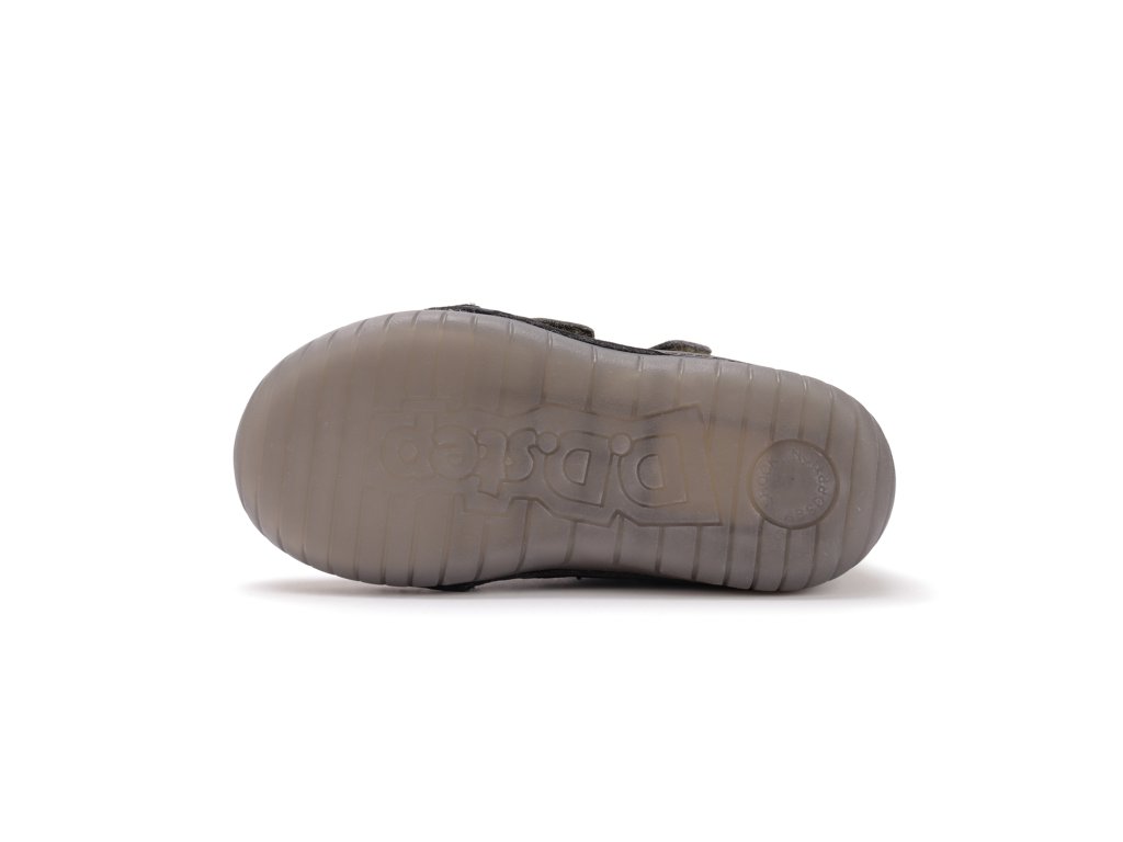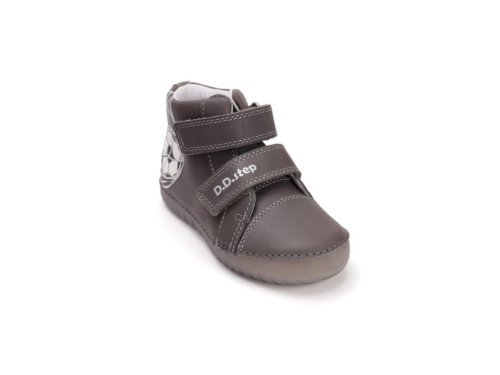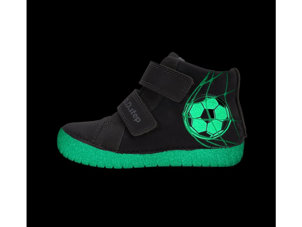 Detská kožená obuv-celorok, mäkká-flexibilná podrážka pre pohodlnú chôdzu a praktické zapínanie na suchý zips. Obuv je celokožená s koženou tvarovanou stielkou z mäkčenej kože najvyššej kvality aby bola pre deti maximálne pohodlná a je vyberateľná. Podrážka je lepená a aj šitá najmodernejšou 3D technológiou. Obuv D.D.Step je odľahčená s ohybnou podrážkou a pri prstoch širšia. Podrážka a symbol na boku obuvi je z fluorescenčného materiálu, cez deň absorbuje svetlo a v tme svieti, nie je LED!!
