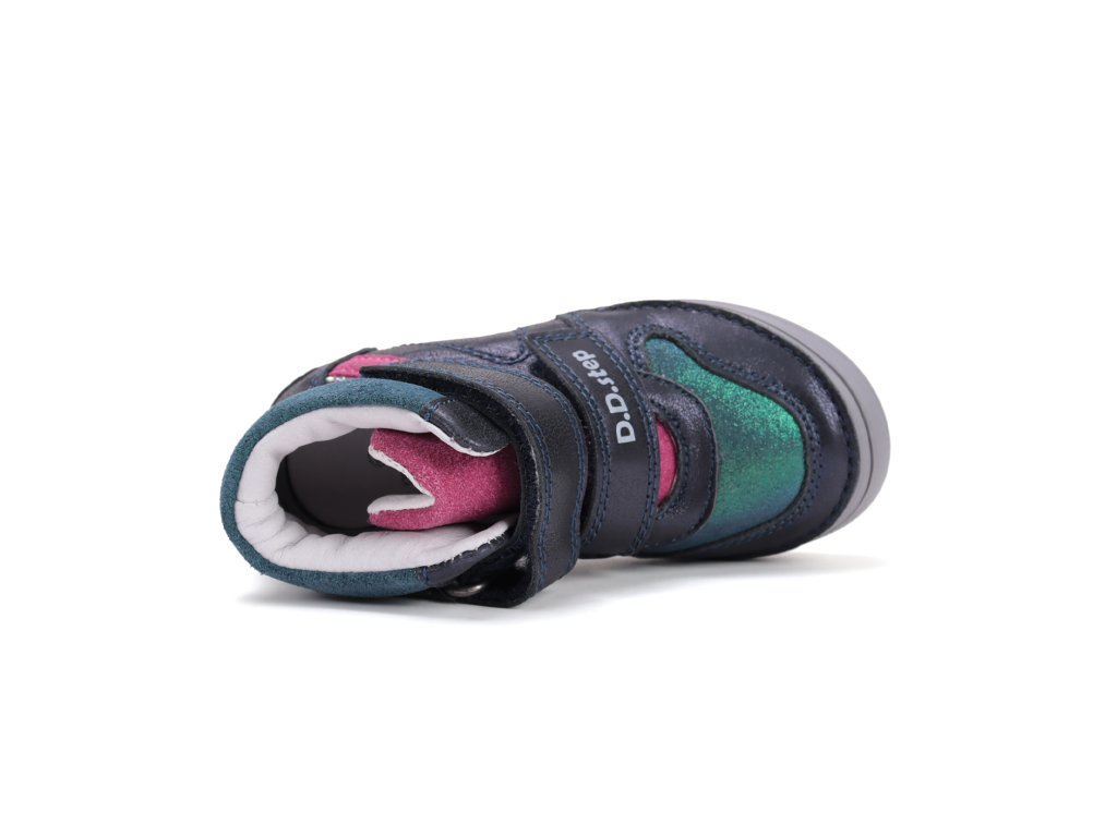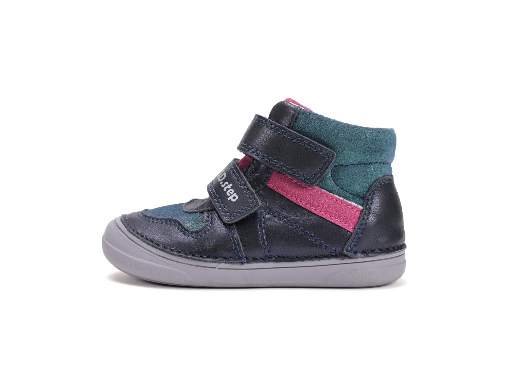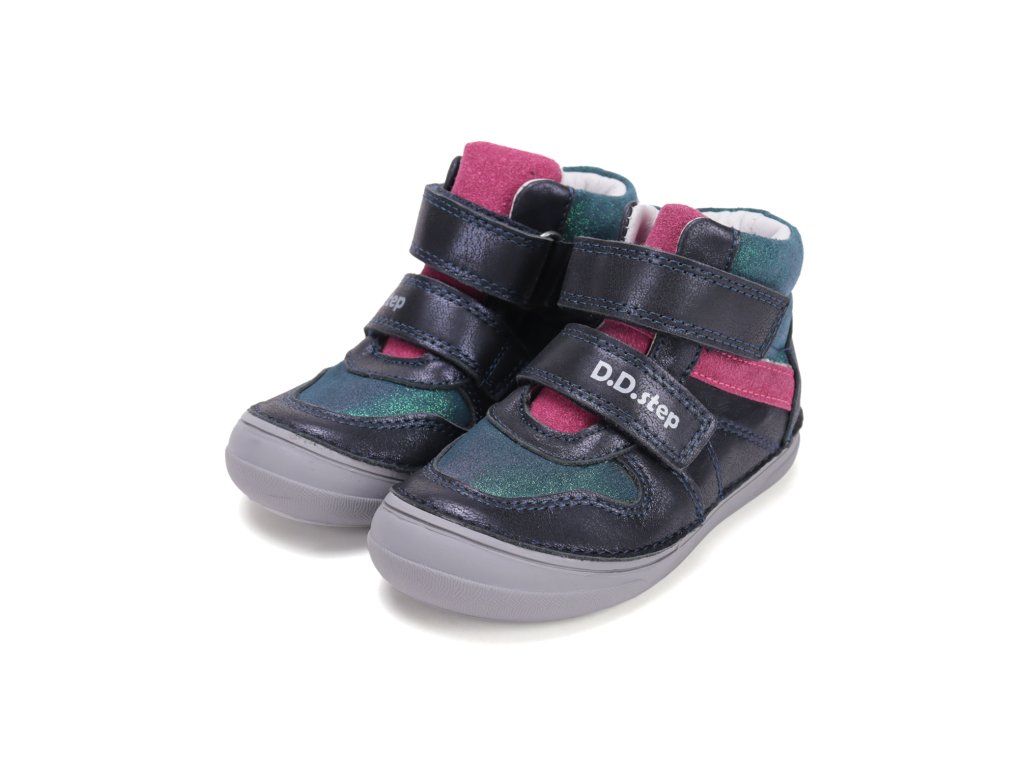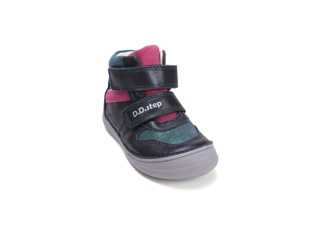 Detská kožená obuv-celorok, mäkká-flexibilná podrážka pre pohodlnú chôdzu, praktické zapínanie na suchý zips elastická vložka na členku. Obuv je celokožená s koženou stielkou z mäkčenej kože najvyššej kvality aby bola pre deti maximálne pohodlná a je vyberateľná. Podrážka je lepená a aj šitá najmodernejšou 3D technológiou. Obuv D.D.Step je odľahčená, ohybná a pri prstoch širšia.