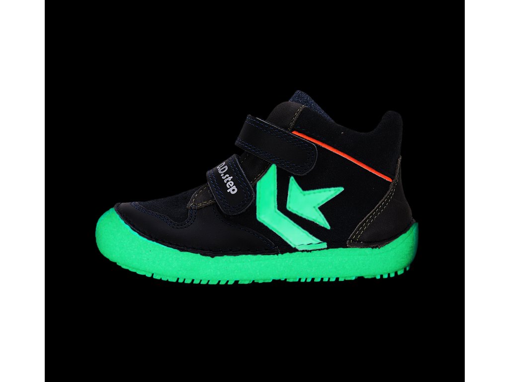 Detská kožená obuv-celorok, BAREFOOT, mäkká-flexibilná podrážka, pre pohodlnú chôdzu a praktické zapínanie na suchý zips. Obuv je celokožená z odolnej lícovej kože s koženou stielkou z mäkčenej kože najvyššej kvality aby bola pre deti maximálne pohodlná, je vyberateľná. Podrážka je lepená a aj šitá najmodernejšou 3D technológiou. Obuv D.D.Step je odľahčená, vodo odpudivá a pri prstoch širšia, ohybná. Podrážka je fluorescenčná, cez deň absorbuje svetlo a v noci svieti, nie je LED!
