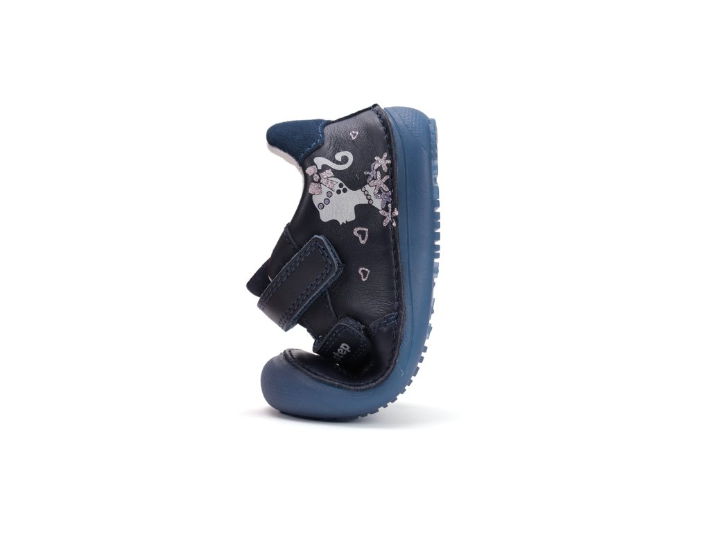 Detská kožená barefoot obuv, mäkká-flexibilná podrážka pre pohodlnú chôdzu a praktické zapínanie na suchý zips. Obuv je celokožená s koženou stielkou z mäkčenej kože najvyššej kvality aby bola pre deti maximálne pohodlná a je vyberateľná. Podrážka je lepená a aj šitá najmodernejšou 3D technológiou. Obuv D.D.Step je odľahčená s ohybnou podrážkou a pri prstoch širšia. Podrážka a symbol na boku obuvi je z fluorescenčného materiálu, cez deň absorbuje svetlo a v tme svieti, nie je LED!!