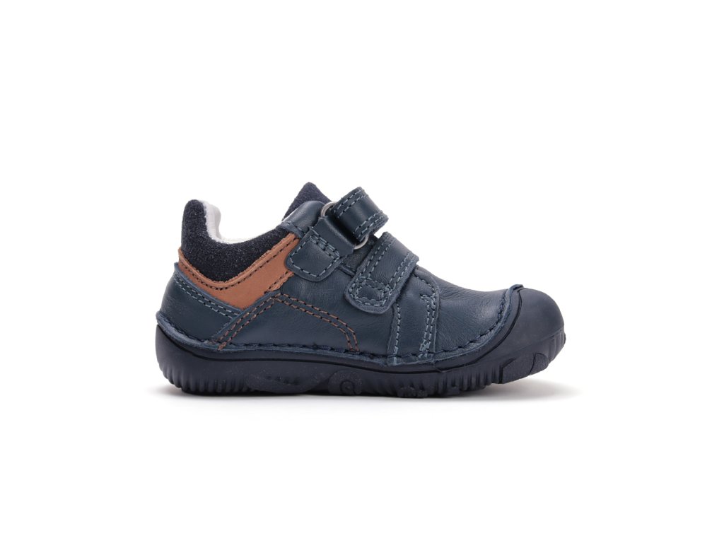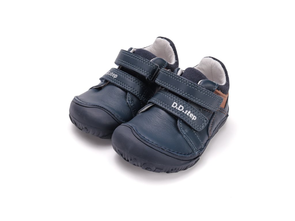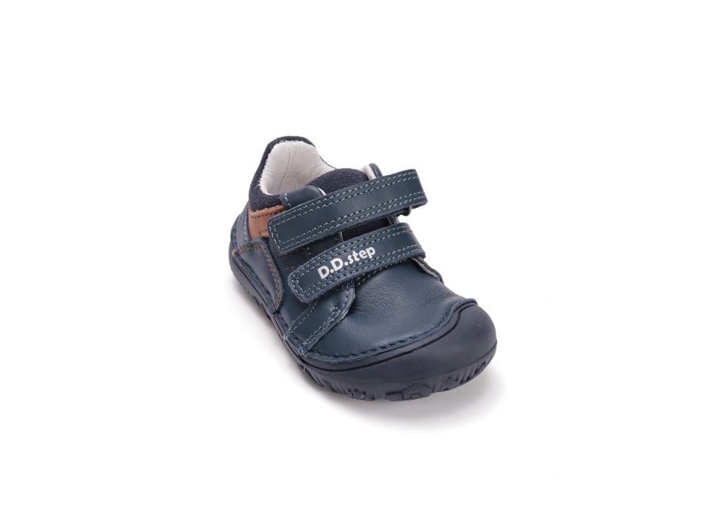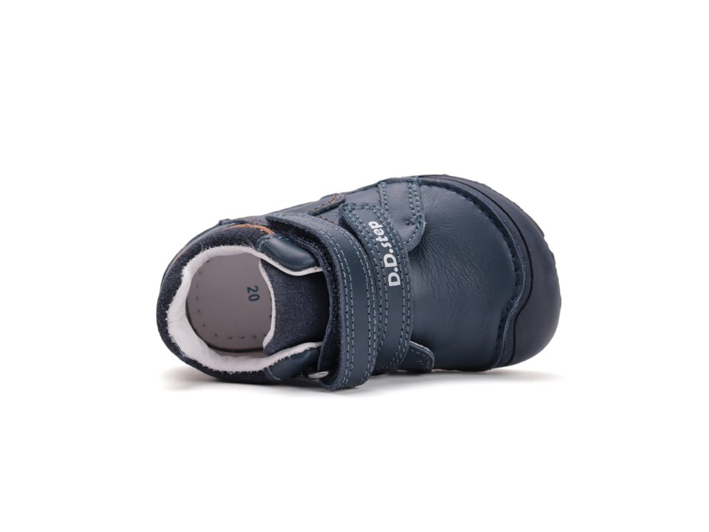 Detská kožená obuv-celorok, mäkká-flexibilná podrážka pre pohodlnú chôdzu a praktické zapínanie na suchý zips. Obuv je celokožená s koženou stielkou z mäkčenej kože najvyššej kvality aby bola pre deti maximálne pohodlná a je vyberateľná. Podrážka je lepená a aj šitá najmodernejšou 3D technológiou. Obuv D.D.Step je odľahčená, ohybná a pri prstoch širšia , bare foot obuv. Novinkou pri D.D.Step obuvi je podrážka so zmesou trstiny (vidieť ako jemné zrná vo farbe podrážky) pre ekologickejšiu výrobu a rozložiteľnosť pri recyklácií.