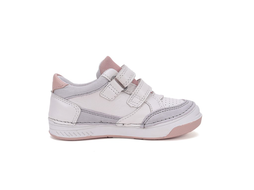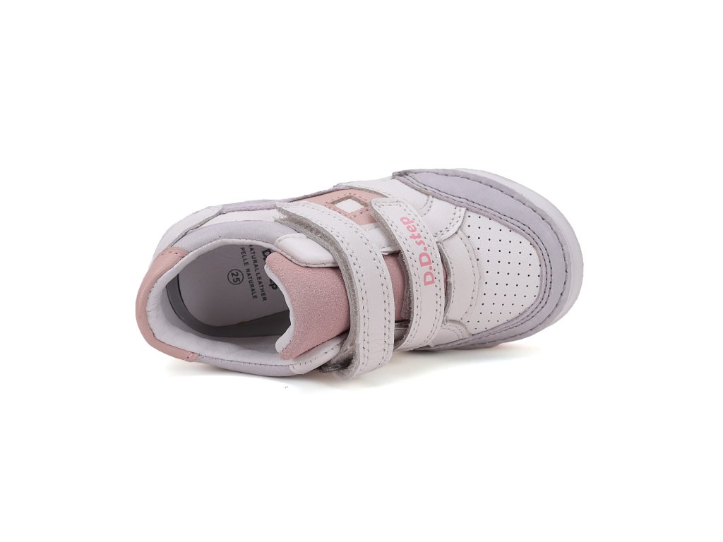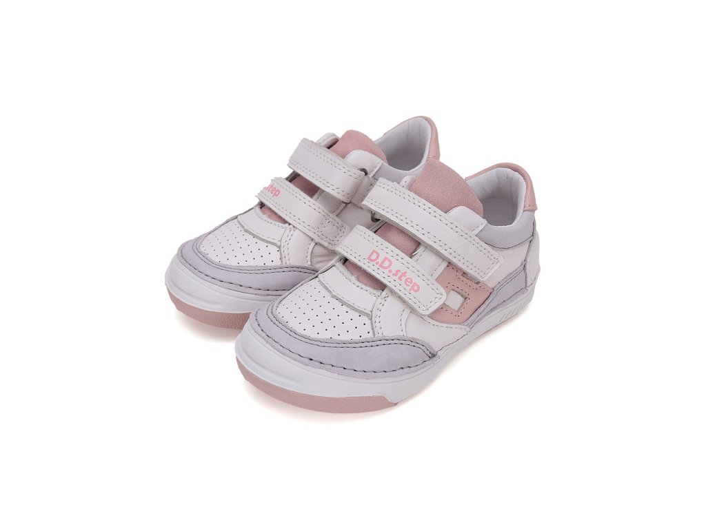 Detská kožená obuv-celorok, mäkká-flexibilná podrážka pre pohodlnú chôdzu a praktické zapínanie na suchý zips. Obuv je celokožená s koženou tvarovanou stielkou z mäkčenej kože najvyššej kvality aby bola pre deti maximálne pohodlná a je vyberateľná. Podrážka je lepená a aj šitá najmodernejšou 3D technológiou. Obuv D.D.Step je odľahčená s ohybnou podrážkou a pri prstoch širšia.