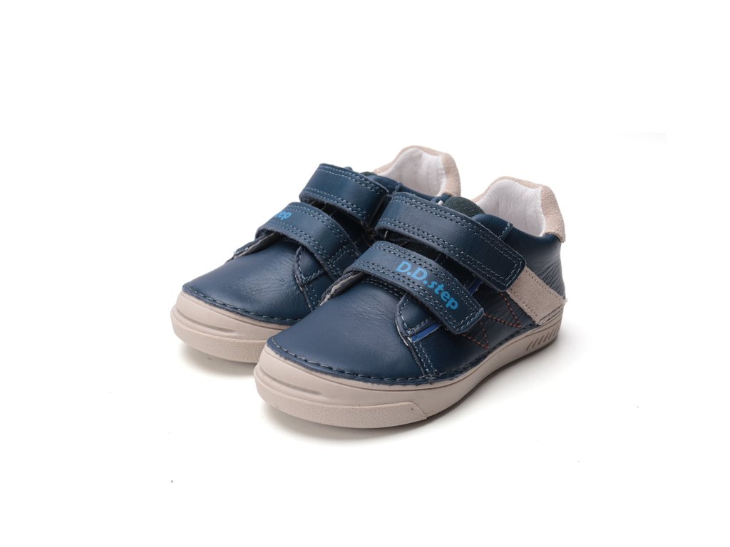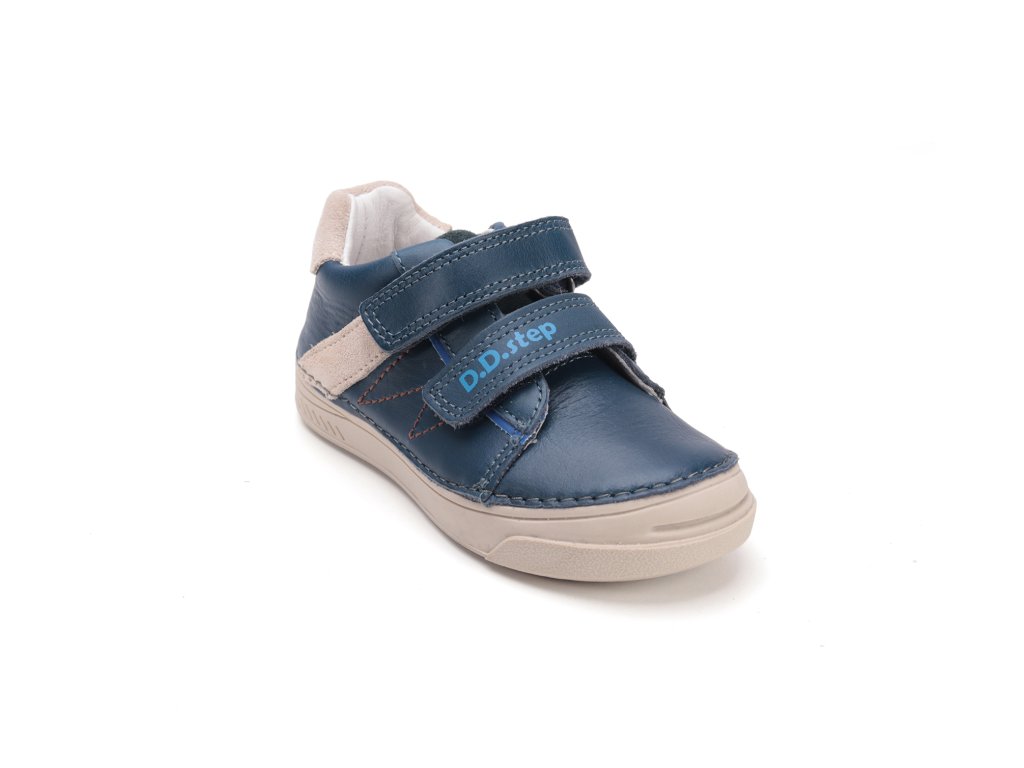 Detská kožená obuv-celorok, mäkká-flexibilná podrážka pre pohodlnú chôdzu a praktické zapínanie na suchý zips. Obuv je celokožená s koženou tvarovanou stielkou z mäkčenej kože najvyššej kvality aby bola pre deti maximálne pohodlná a je vyberateľná. Podrážka je lepená a aj šitá najmodernejšou 3D technológiou. Obuv D.D.Step je odľahčená s ohybnou podrážkou a pri prstoch širšia.
