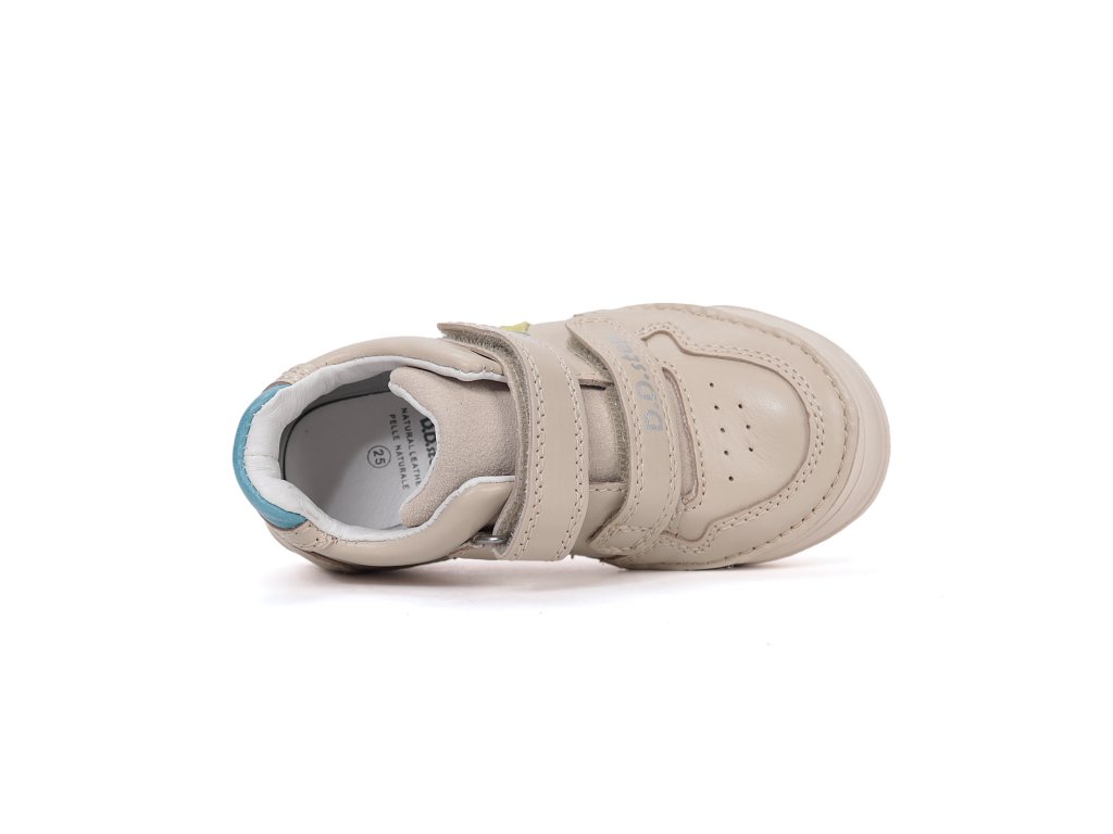 Detská kožená obuv-celorok, mäkká-flexibilná podrážka pre pohodlnú chôdzu a praktické zapínanie na suchý zips. Obuv je celokožená s koženou tvarovanou stielkou z mäkčenej kože najvyššej kvality aby bola pre deti maximálne pohodlná a je vyberateľná. Podrážka je lepená a aj šitá najmodernejšou 3D technológiou. Obuv D.D.Step je odľahčená s ohybnou podrážkou a pri prstoch širšia.