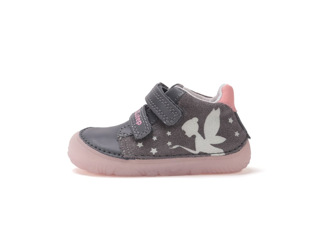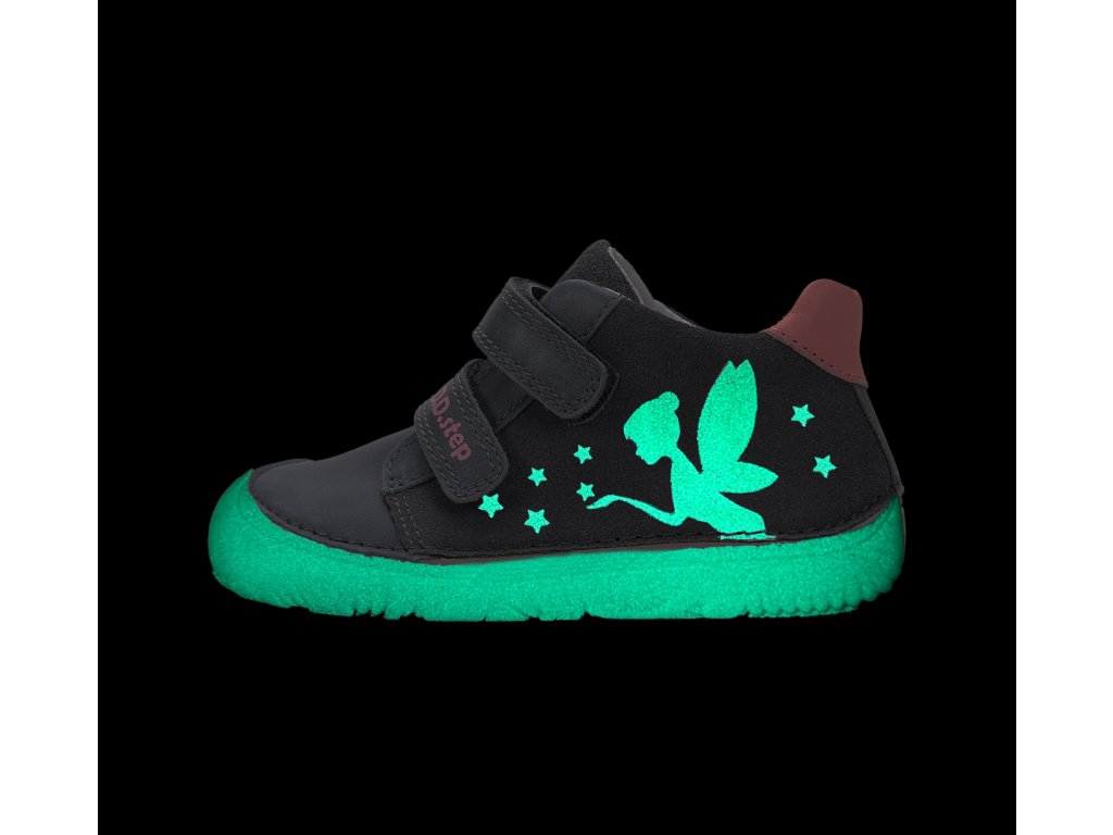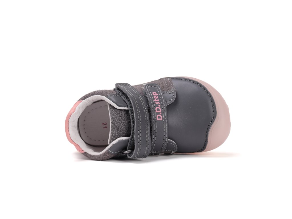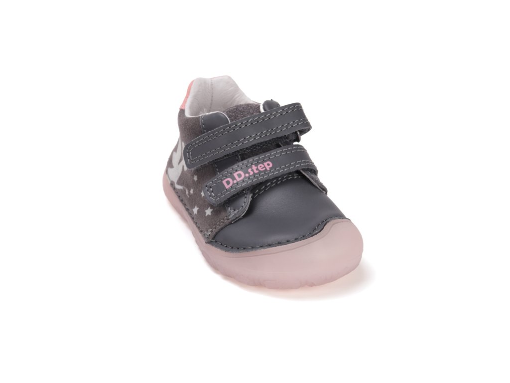 Detská kožená obuv-celorok, mäkká-flexibilná podrážka pre pohodlnú chôdzu a praktické zapínanie na suchý zips. Obuv je celokožená s koženou stielkou z mäkčenej kože najvyššej kvality aby bola pre deti maximálne pohodlná a je vyberateľná. Podrážka je lepená a aj šitá najmodernejšou 3D technológiou. Obuv D.D.Step je odľahčená, ohybná a pri prstoch širšia , bare foot obuv. Novinkou pri D.D.Step obuvi je podrážka so zmesou trstiny (vidieť ako jemné zrná vo farbe podrážky) pre ekologickejšiu výrobu a rozložiteľnosť pri recyklácií.