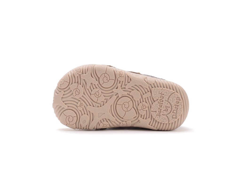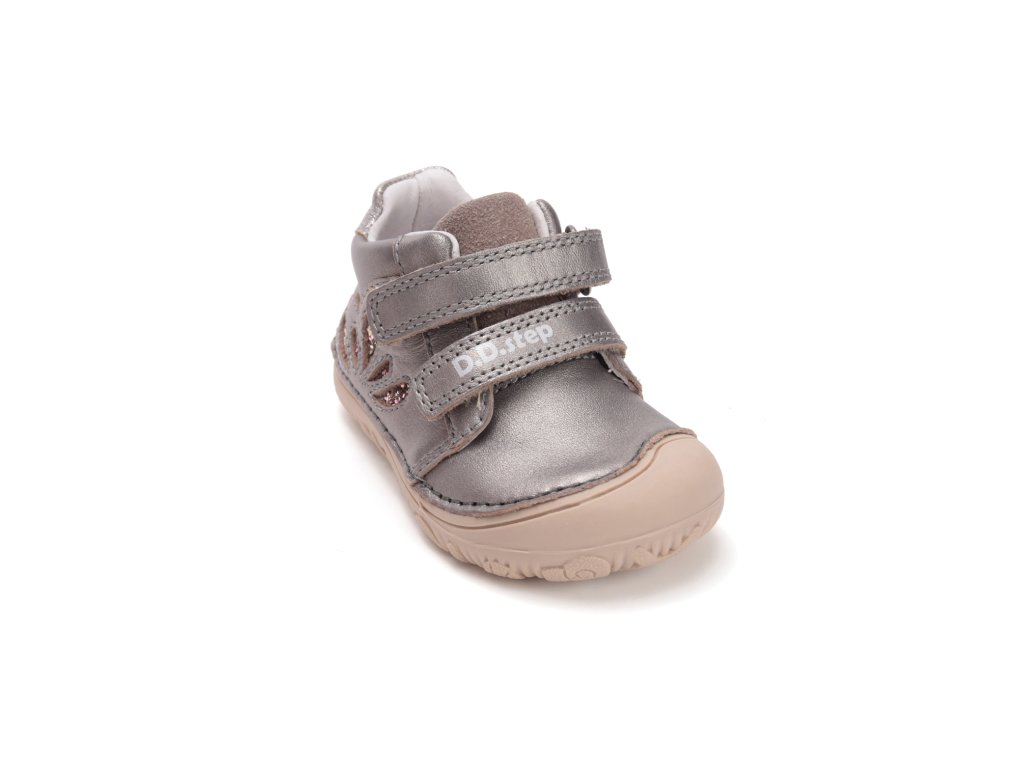Detská kožená obuv-celorok, mäkká-flexibilná podrážka pre pohodlnú chôdzu a praktické zapínanie na suchý zips. Obuv je celokožená s koženou stielkou z mäkčenej kože najvyššej kvality aby bola pre deti maximálne pohodlná a je vyberateľná. Podrážka je lepená a aj šitá najmodernejšou 3D technológiou. Obuv D.D.Step je odľahčená, ohybná a pri prstoch širšia , bare foot obuv. Novinkou pri D.D.Step obuvi je podrážka so zmesou trstiny (vidieť ako jemné zrná vo farbe podrážky) pre ekologickejšiu výrobu a rozložiteľnosť pri recyklácií.