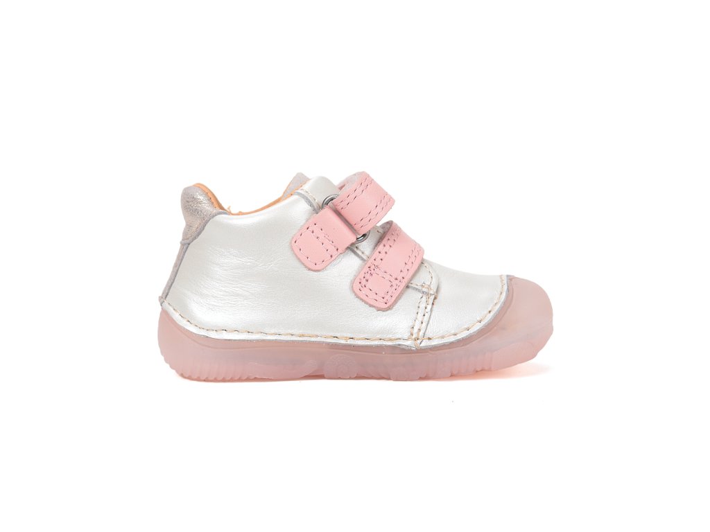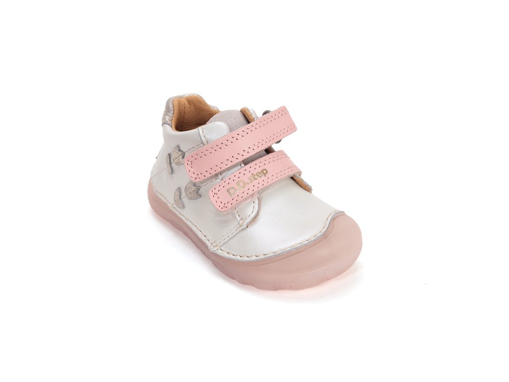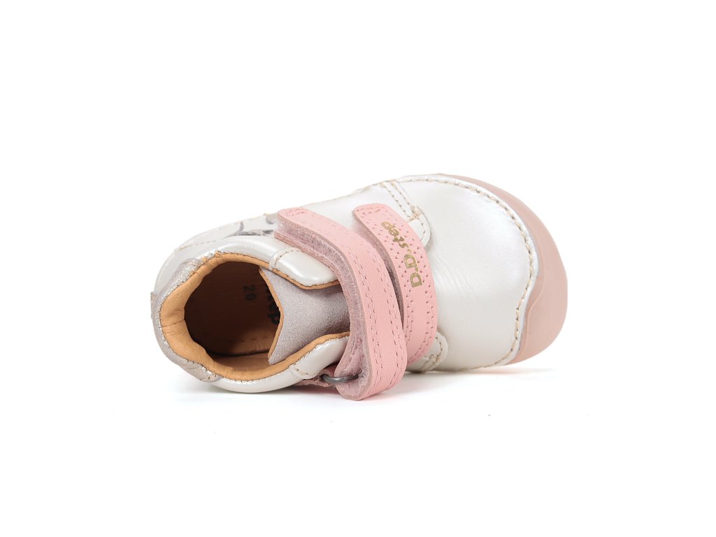 Detská kožená obuv-celorok, mäkká-flexibilná podrážka pre pohodlnú chôdzu a praktické zapínanie na suchý zips. Obuv je celokožená s koženou stielkou z mäkčenej kože najvyššej kvality aby bola pre deti maximálne pohodlná a je vyberateľná. Podrážka je lepená a aj šitá najmodernejšou 3D technológiou. Obuv D.D.Step je odľahčená, ohybná a pri prstoch širšia , bare foot obuv. Novinkou pri D.D.Step obuvi je podrážka so zmesou trstiny (vidieť ako jemné zrná vo farbe podrážky) pre ekologickejšiu výrobu a rozložiteľnosť pri recyklácií.