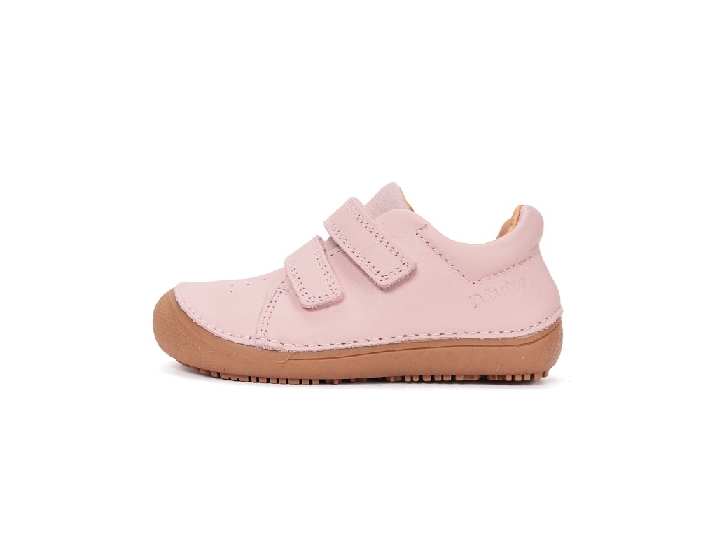 Detská kožená barefoot obuv, mäkká-flexibilná podrážka pre pohodlnú chôdzu a praktické zapínanie na suchý zips. Obuv je celokožená s koženou stielkou z mäkčenej kože najvyššej kvality aby bola pre deti maximálne pohodlná a je vyberateľná. Podrážka je lepená a aj šitá najmodernejšou 3D technológiou. Obuv D.D.Step je odľahčená s ohybnou podrážkou a pri prstoch širšia.