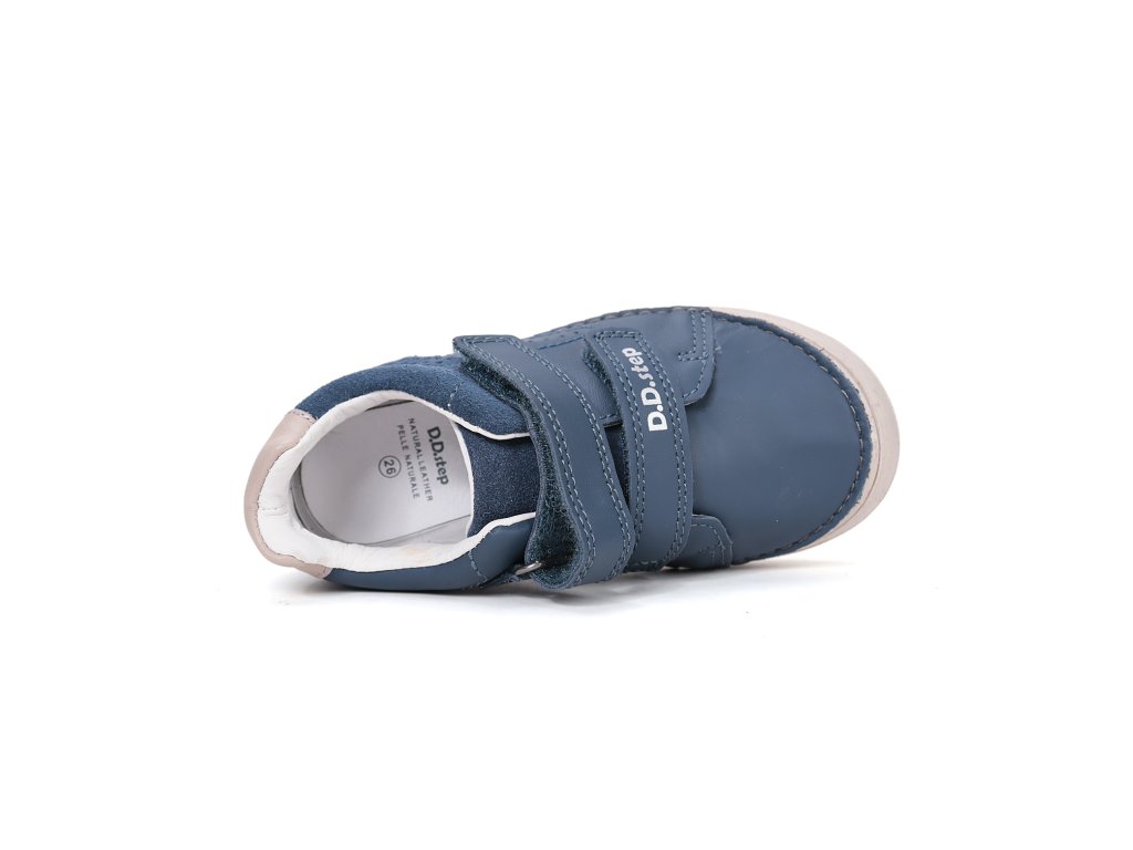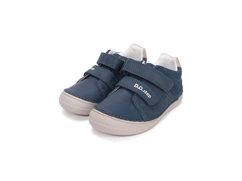Detská kožená obuv-celorok, mäkká-flexibilná podrážka pre pohodlnú chôdzu a praktické zapínanie na suchý zips. Obuv je celokožená s koženou anatomicky tvarovanou stielkou z mäkčenej kože najvyššej kvality aby bola pre deti maximálne pohodlná a je vyberateľná. Päta je spevnená, podrážka je lepená a aj šitá najmodernejšou 3D technológiou. Obuv D.D.Step je odľahčená, ohybná a pri prstoch širšia ako pri bare foot obuvi.