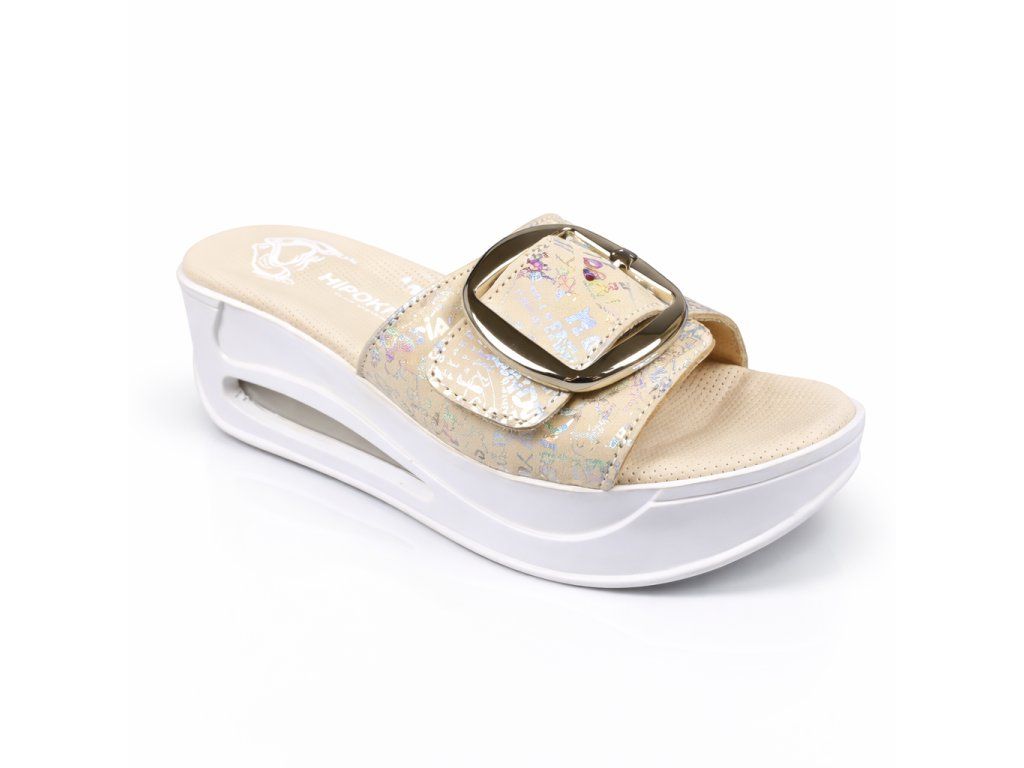 Štýlové dámske celokožené šľapky s mäkkou výstelkou, anatomicky tvarované na podporu klenby, priečnej klenby, prstov a masážnym bodom v päte. Priehlavok je na funkčnú pracku, dá sa nastaviť na ideálnu výšku priehlavku.