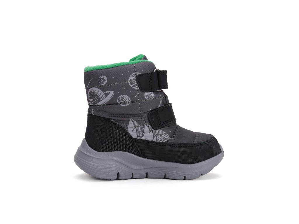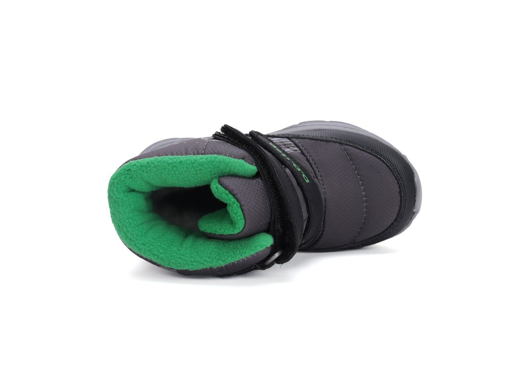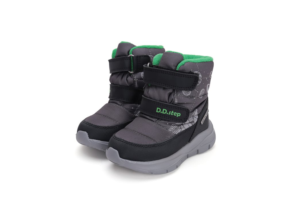 Detská zimná obuv s Aquatex membránou aby bola nepremokavá v štýle snehúl. Je hrubo zateplená kožušinou, zvršok je kombináciou kože a textílie s reflexnou vrstvou, zapínanie na suchý zips. Má hrubšiu protišmykovú podrážku do vlhšieho a chladnejšieho počasia. Je lepená a aj šitá najmodernejšou 3D technológiou. Obuv D.D.Step je odľahčená.