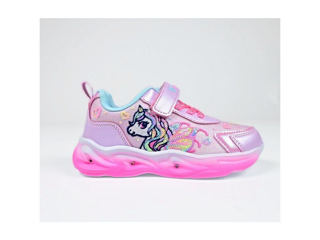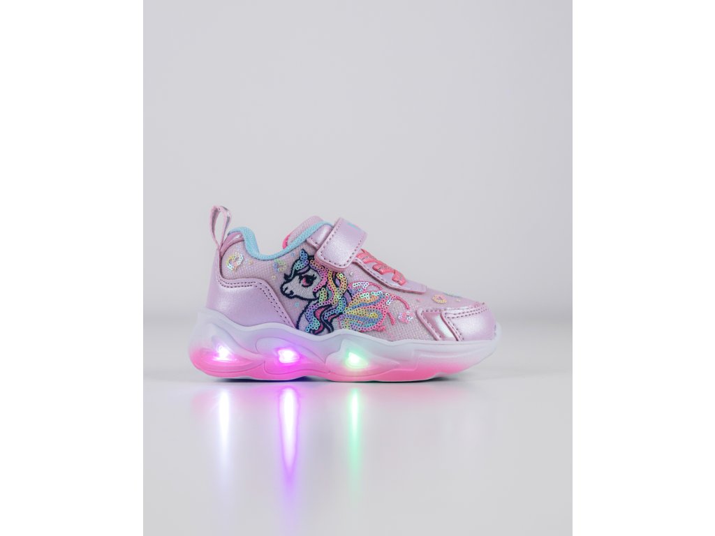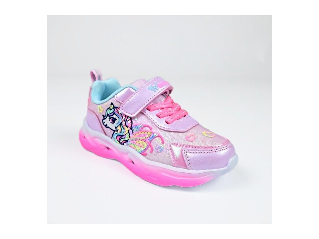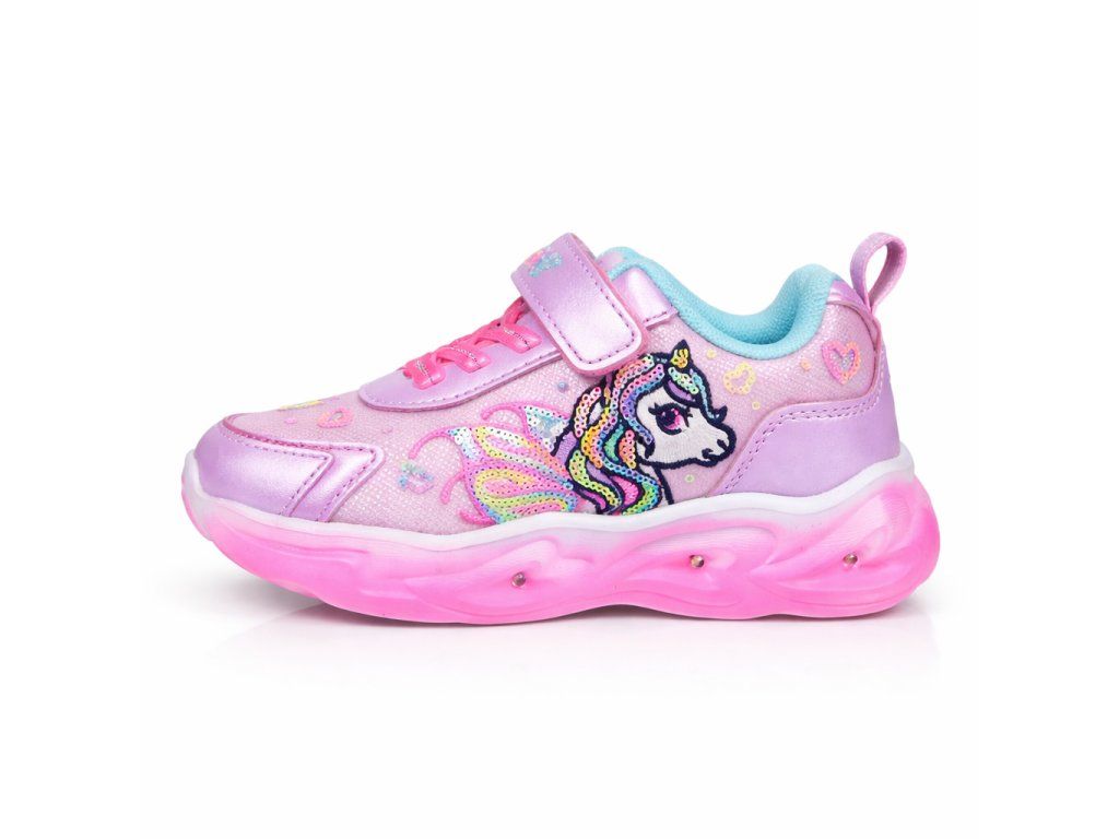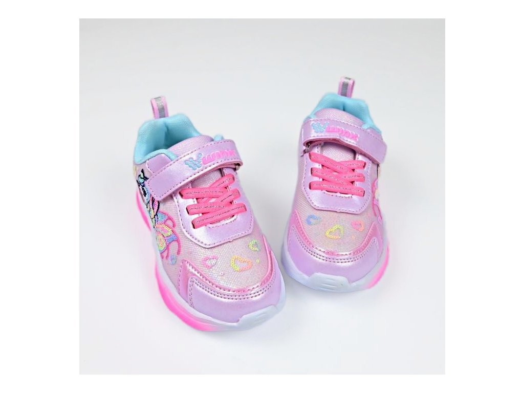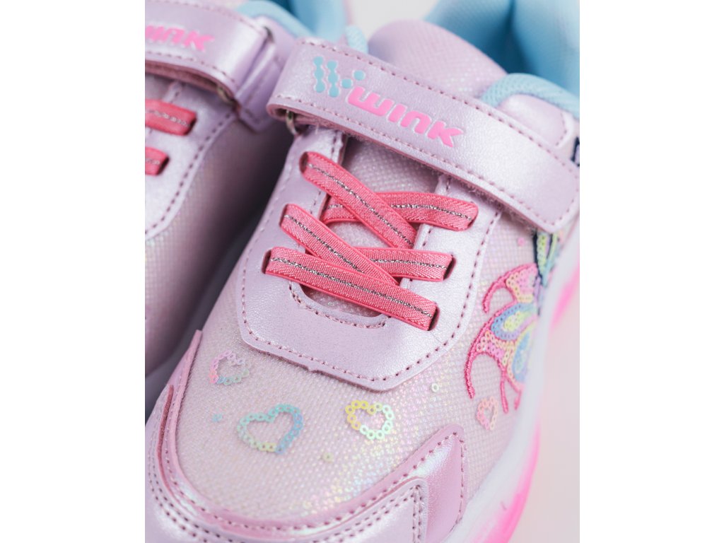 Trendy detské športové tenisky WINK so zapínaním na suchý zips pre ľahké obutie. Celý zvršok je zo vzdušného textilu s pohodlnou podrážkou ako na športovej obuvi. Obuv je extra ľahká. V podrážke sú LED svetielka.