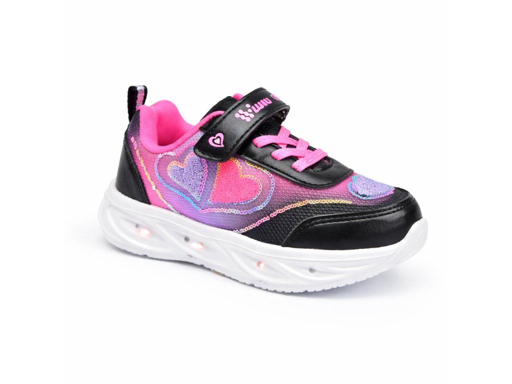 Trendy detské športové tenisky WINK so zapínaním na suchý zips pre ľahké obutie. Celý zvršok je zo vzdušného textilu s pohodlnou podrážkou ako na športovej obuvi. Obuv je extra ľahká. V podrážke sú LED svetielka.