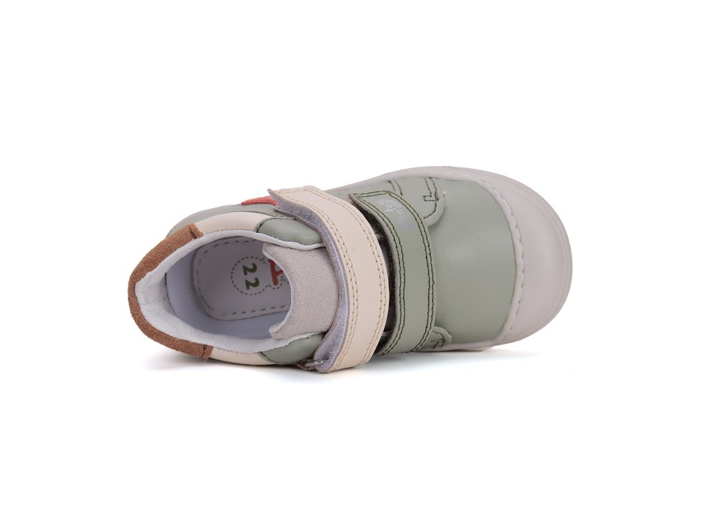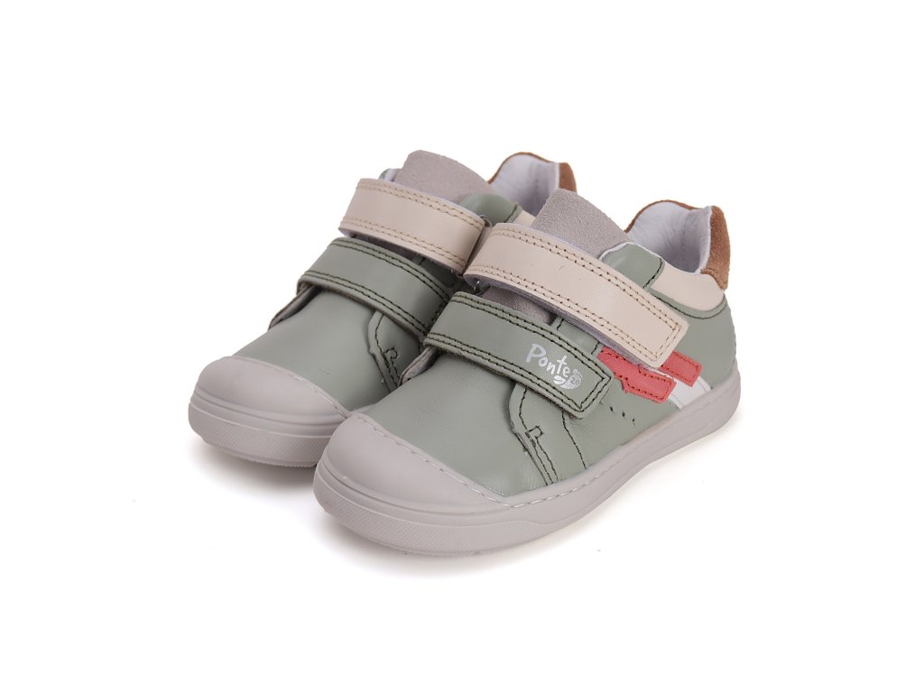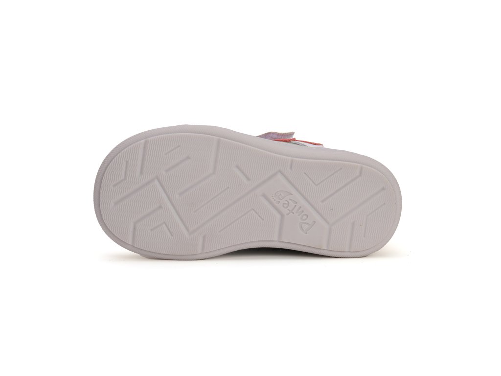 Detská kožená obuv-celorok so špeciálnou podrážkou so supináciou. Supinácia nie je nič iné ako naklonenie chodidiel tak, aby os päty a holennej kosti dieťaťa bola rovnobežná, čím sa zabráni rozvoju nohy X a bolesti nôh dieťaťa pri chôdzi, čím sa zabráni ochabnutiu pozdĺžnej klenby, skolióze, problémom s väzmi kolena. a stehien. Vďaka svojmu technologickému pokroku je topánka so supináciou nerozoznateľná od inej obuvi. Zvýšený podpätok o 5 mm je so sklonom, kde vnútorná hrana päty je vyššia cca o 5 stupňov, je umiestnený vo vnútri podrážky. Dieťa pri tomto riešení nemá žiadny problém nosiť topánky so supináciou, takže jeho chodidlá dosiahnu za krátky čas prirodzenú polohu. Obuv je celokožená s koženou tvarovanou stielkou z mäkčenej kože. Obuv je odľahčená a pri prstoch so širšou a ohybnou podrážkou.