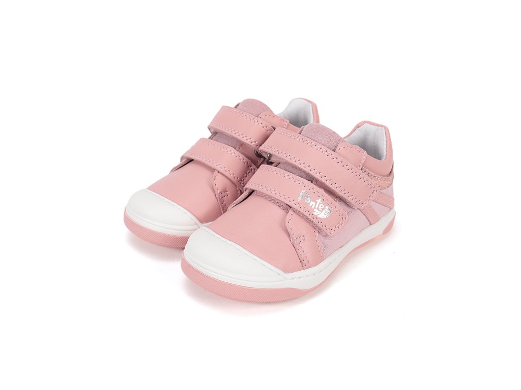 Detská kožená obuv-celorok so špeciálnou podrážkou so supináciou. Supinácia nie je nič iné ako naklonenie chodidiel tak, aby os päty a holennej kosti dieťaťa bola rovnobežná, čím sa zabráni rozvoju nohy X a bolesti nôh dieťaťa pri chôdzi, čím sa zabráni ochabnutiu pozdĺžnej klenby, skolióze, problémom s väzmi kolena. a stehien. Vďaka svojmu technologickému pokroku je topánka so supináciou nerozoznateľná od inej obuvi. Zvýšený podpätok o 5 mm je so sklonom, kde vnútorná hrana päty je vyššia cca o 5 stupňov, je umiestnený vo vnútri podrážky. Dieťa pri tomto riešení nemá žiadny problém nosiť topánky so supináciou, takže jeho chodidlá dosiahnu za krátky čas prirodzenú polohu. Obuv je celokožená s koženou tvarovanou stielkou z mäkčenej kože. Obuv je odľahčená a pri prstoch so širšou a ohybnou podrážkou.