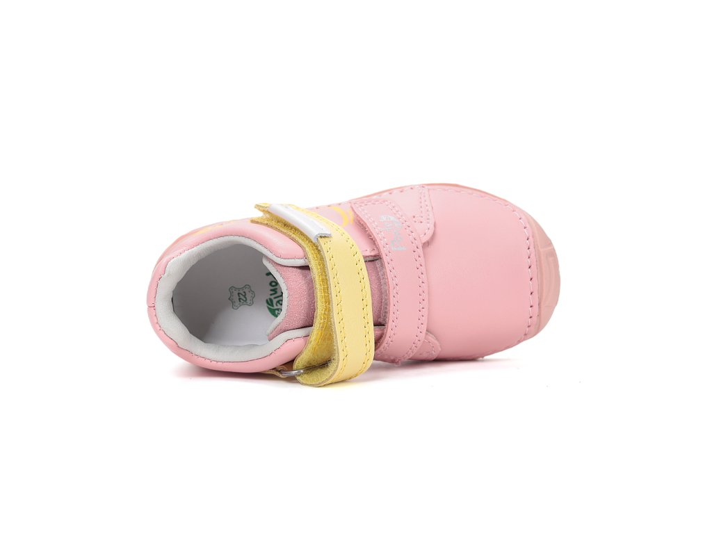 Detská kožená obuv-celorok so špeciálnou podrážkou so supináciou. Supinácia nie je nič iné ako naklonenie chodidiel tak, aby os päty a holennej kosti dieťaťa bola rovnobežná, čím sa zabráni rozvoju nohy X a bolesti nôh dieťaťa pri chôdzi, čím sa zabráni ochabnutiu pozdĺžnej klenby, skolióze, problémom s väzmi kolena a stehien. Vďaka svojmu technologickému pokroku je topánka so supináciou nerozoznateľná od inej obuvi. Zvýšený podpätok o 5 mm je so sklonom, kde vnútorná hrana päty je vyššia cca o 5 stupňov, je umiestnený vo vnútri podrážky. Dieťa pri tomto riešení nemá žiadny problém nosiť topánky so supináciou, takže jeho chodidlá dosiahnu za krátky čas prirodzenú polohu. Obuv je celokožená s koženou tvarovanou stielkou z mäkčenej kože. Obuv je odľahčená a pri prstoch so širšou a ohybnou podrážkou.