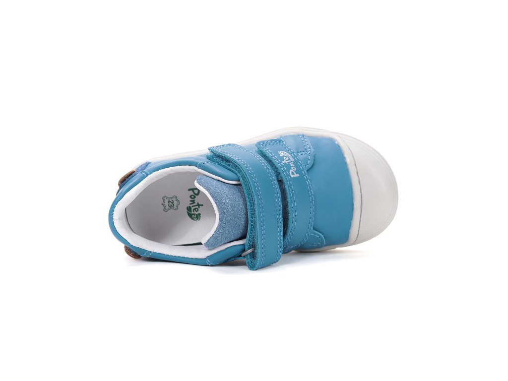 Detská kožená obuv-celorok so špeciálnou podrážkou so supináciou. Supinácia nie je nič iné ako naklonenie chodidiel tak, aby os päty a holennej kosti dieťaťa bola rovnobežná, čím sa zabráni rozvoju nohy X a bolesti nôh dieťaťa pri chôdzi, čím sa zabráni ochabnutiu pozdĺžnej klenby, skolióze, problémom s väzmi kolena. a stehien. Vďaka svojmu technologickému pokroku je topánka so supináciou nerozoznateľná od inej obuvi. Zvýšený podpätok o 5 mm je so sklonom, kde vnútorná hrana päty je vyššia cca o 5 stupňov, je umiestnený vo vnútri podrážky. Dieťa pri tomto riešení nemá žiadny problém nosiť topánky so supináciou, takže jeho chodidlá dosiahnu za krátky čas prirodzenú polohu. Obuv je celokožená s koženou tvarovanou stielkou z mäkčenej kože. Obuv je odľahčená a pri prstoch so širšou a ohybnou podrážkou.