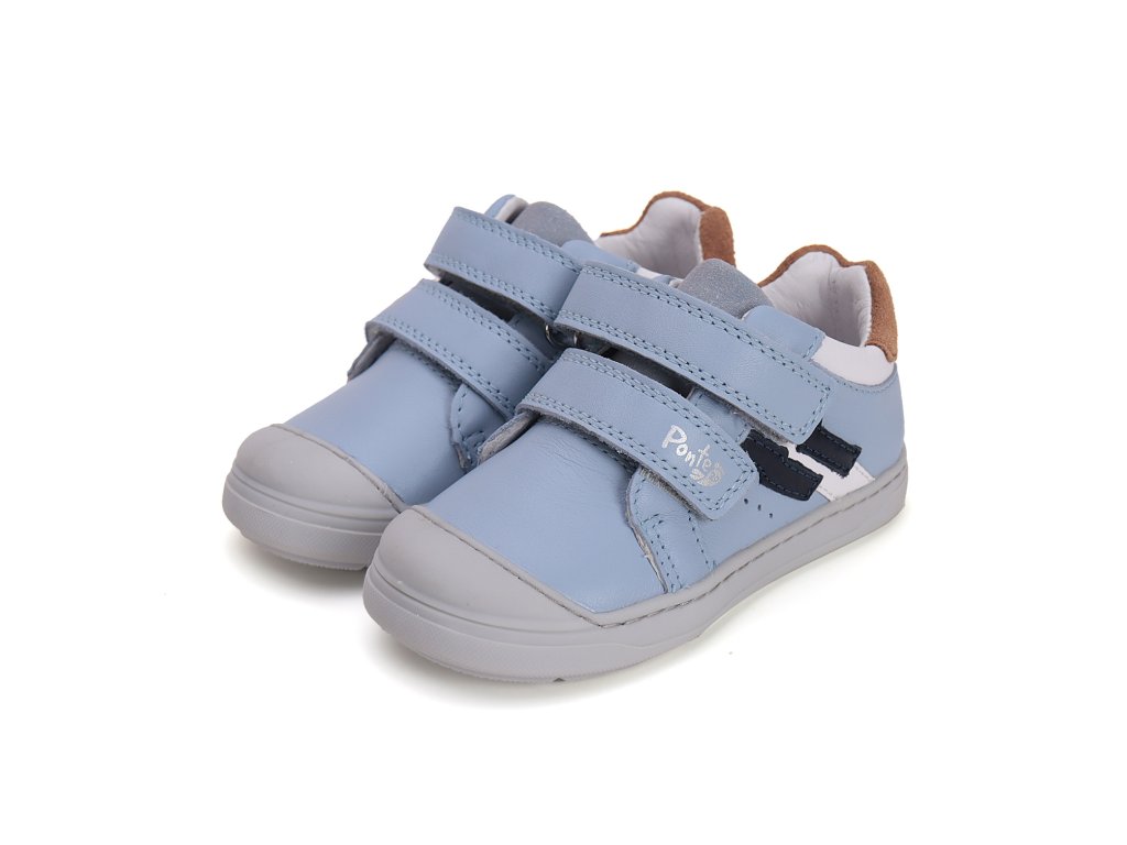 Detská kožená obuv-celorok so špeciálnou podrážkou so supináciou. Supinácia nie je nič iné ako naklonenie chodidiel tak, aby os päty a holennej kosti dieťaťa bola rovnobežná, čím sa zabráni rozvoju nohy X a bolesti nôh dieťaťa pri chôdzi, čím sa zabráni ochabnutiu pozdĺžnej klenby, skolióze, problémom s väzmi kolena. a stehien. Vďaka svojmu technologickému pokroku je topánka so supináciou nerozoznateľná od inej obuvi. Zvýšený podpätok o 5 mm je so sklonom, kde vnútorná hrana päty je vyššia cca o 5 stupňov, je umiestnený vo vnútri podrážky. Dieťa pri tomto riešení nemá žiadny problém nosiť topánky so supináciou, takže jeho chodidlá dosiahnu za krátky čas prirodzenú polohu. Obuv je celokožená s koženou tvarovanou stielkou z mäkčenej kože. Obuv je odľahčená a pri prstoch so širšou a ohybnou podrážkou.