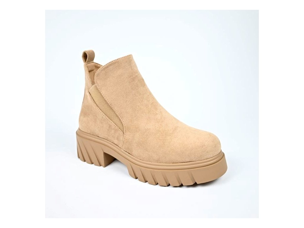Elegantné a zároveň štýlové dámske kotníkové čižmy z jemného semišu v jemnej béžovej farbe. Zapínanie na zips na boku a elastická vložka pre ľahšie obutie ktorá zároveň prispôsobí sa k vašej nohe.