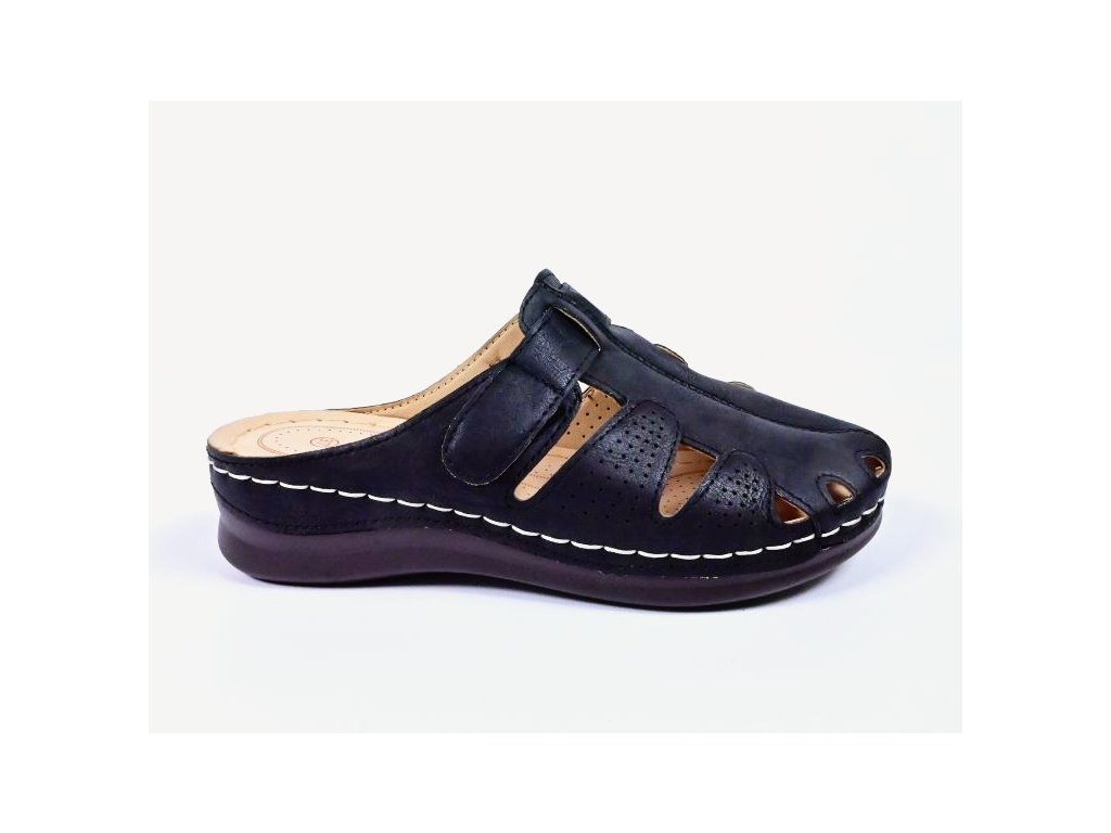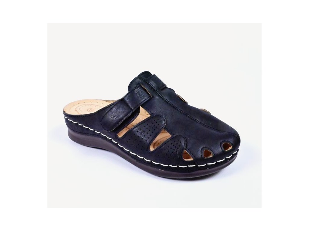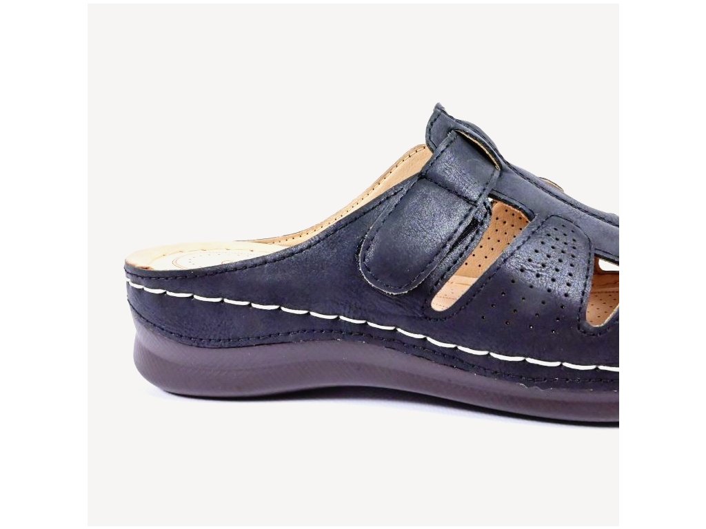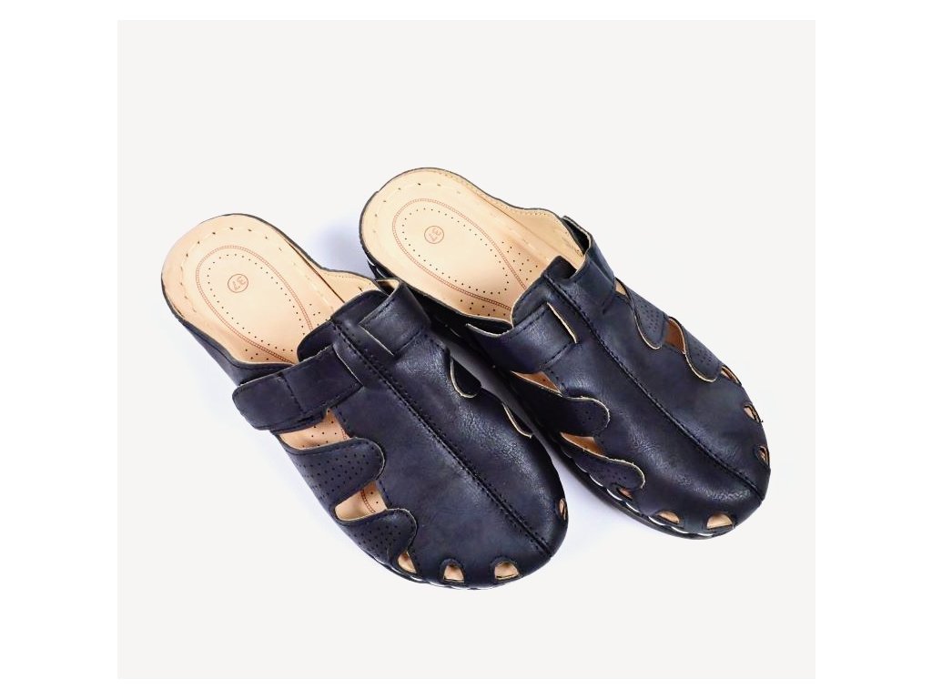 Dámske šľapky na mäkkej, ohybnej podrážke a tvarovanej stielke ktorá zaistí komfort a pohodlnú chôdzu po celý deň. Pracky na priehlavku sa dajú dotiahnuť suchým zipsom na správnu výšku. Výška podrážky v pätovej časti je 4cm.
