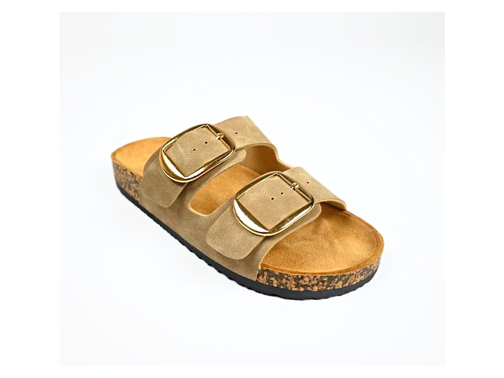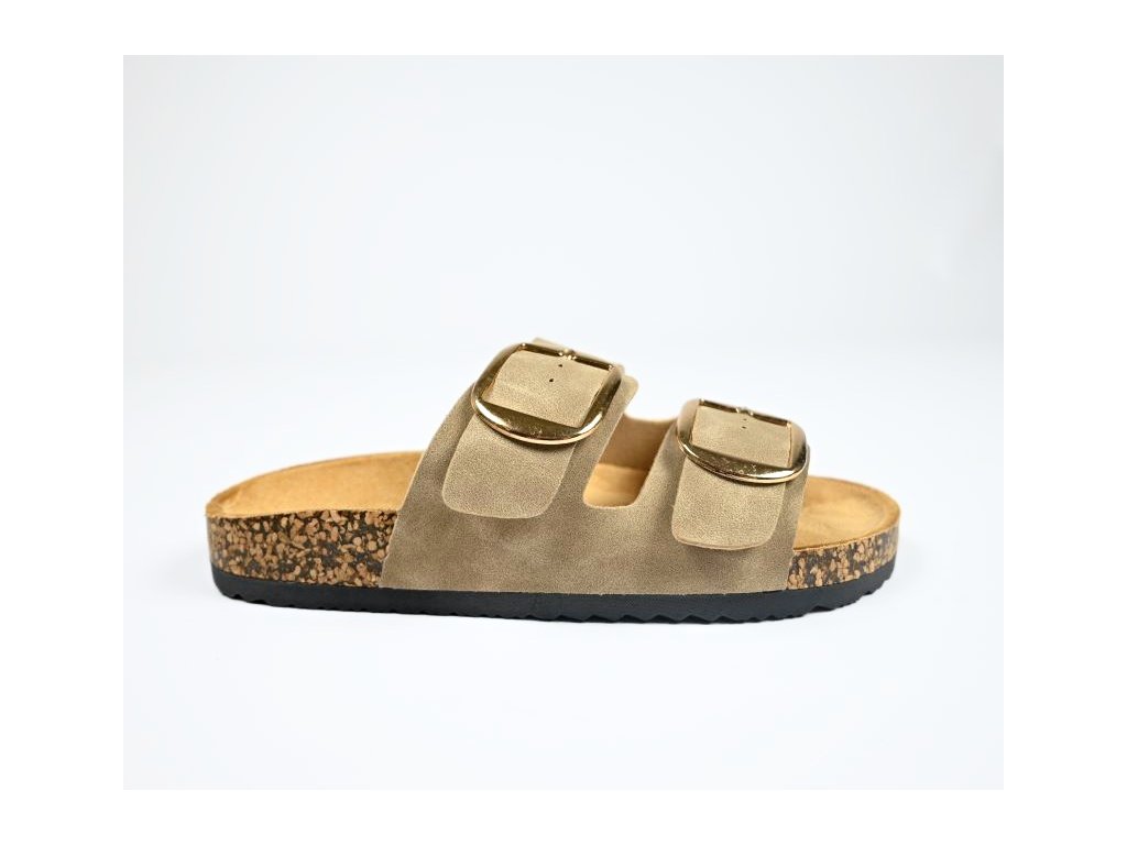 Pohodlné dámske šľapky s korkovým lemom so zapínaním na dve funkčné pracky ktoré viete nastaviť na ideálnu výšku priehlavku. Ponúkajú komfort pre Vaše chodidlá vďaka tvarovanej stielke z nešmykľavého textilu a korýtka - okraja obuvi ktorá drží nohu na správnom mieste.