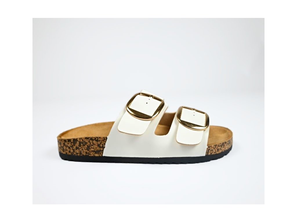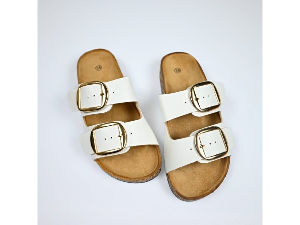 Pohodlné dámske šľapky s korkovým lemom so zapínaním na dve funkčné pracky ktoré viete nastaviť na ideálnu výšku priehlavku. Ponúkajú komfort pre Vaše chodidlá vďaka tvarovanej stielke z nešmykľavého textilu a korýtka - okraja obuvi ktorá drží nohu na správnom mieste.