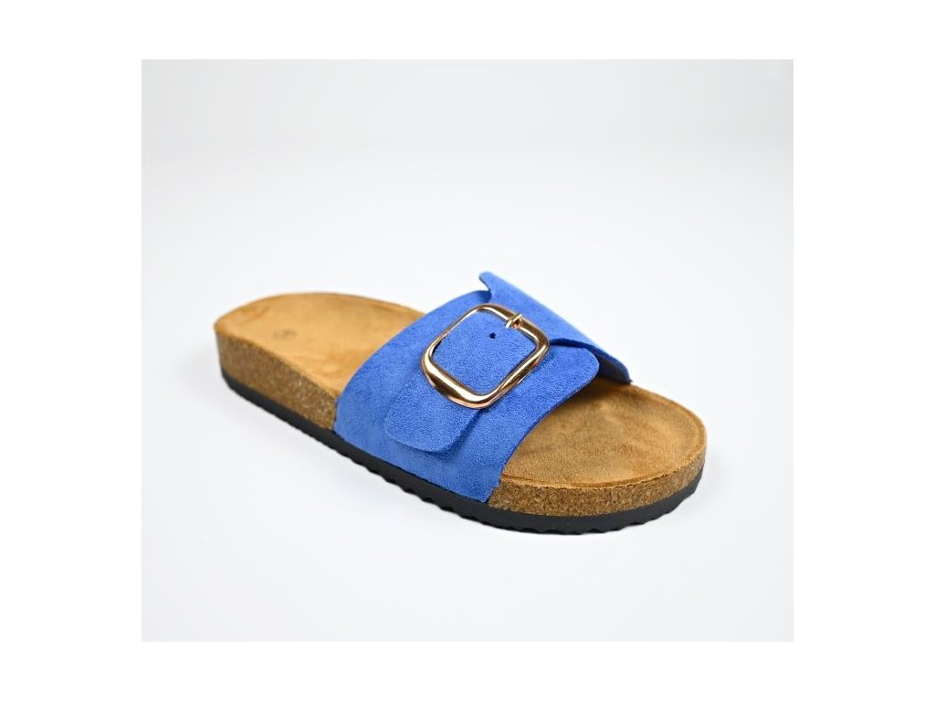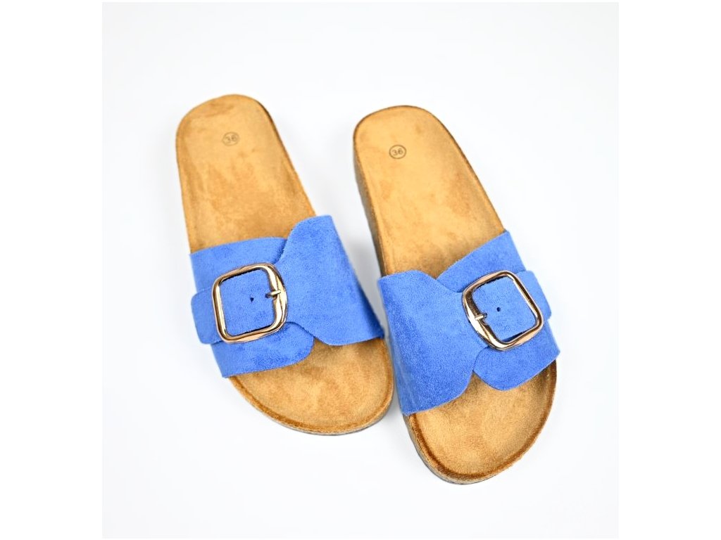 Pohodlné módne dámske šľapky so širšou prackou a s korkovým lemom. Ponúkajú komfort pre Vaše chodidlá vďaka anatomicky tvarovanej stielke z nešmykľavého textilu a korýtka - okraja obuvi ktorá drží nohu na správnom mieste.