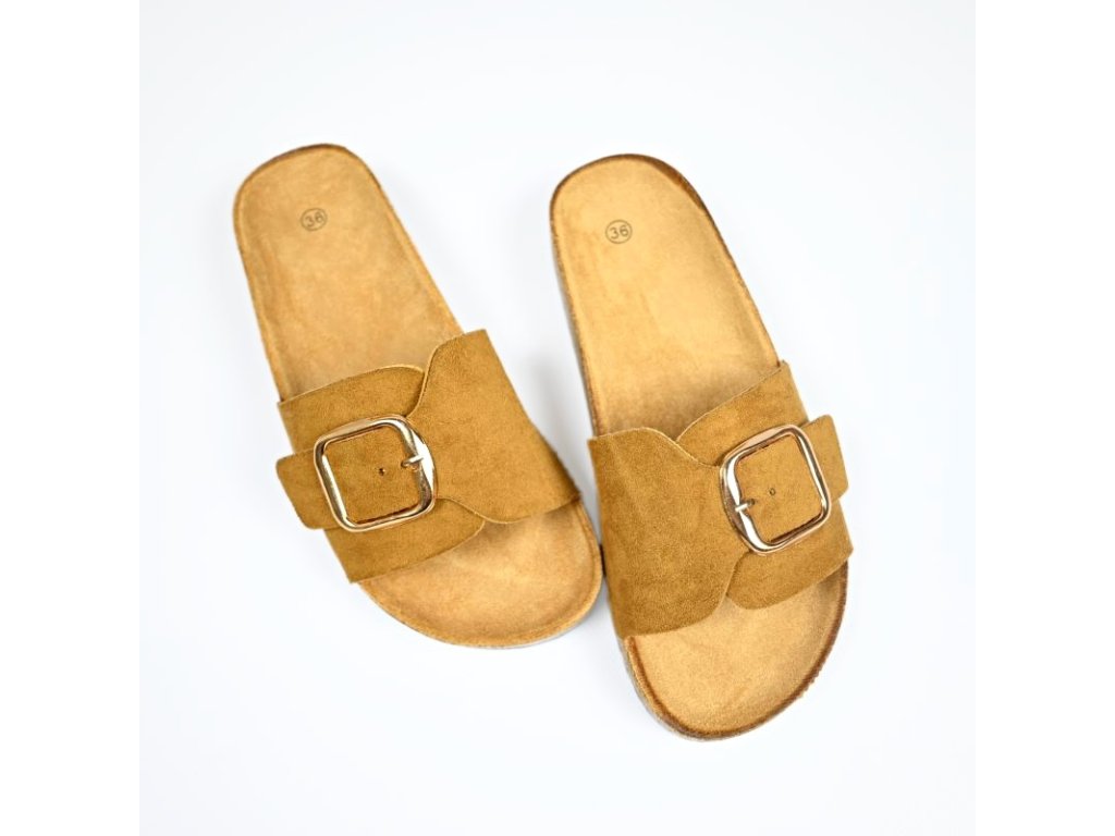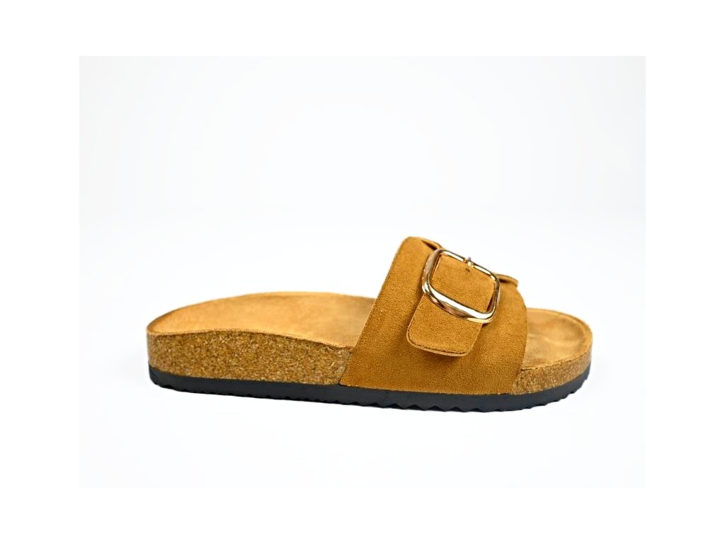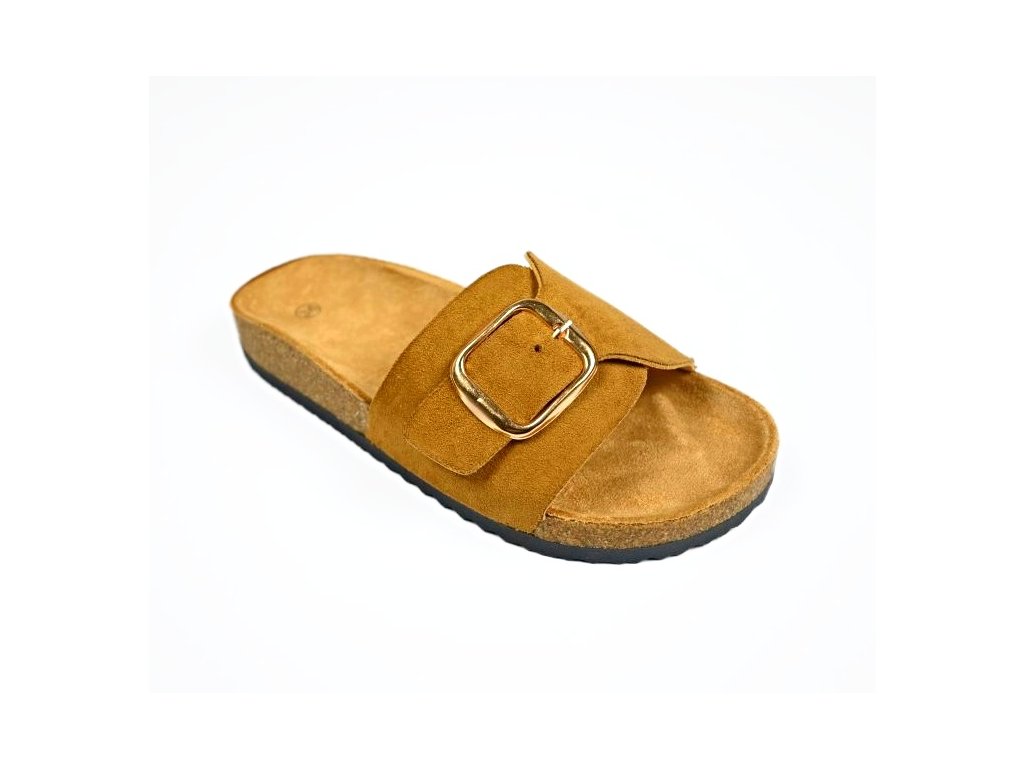 Pohodlné módne dámske šľapky so širšou prackou a s korkovým lemom. Ponúkajú komfort pre Vaše chodidlá vďaka anatomicky tvarovanej stielke z nešmykľavého textilu a korýtka - okraja obuvi ktorá drží nohu na správnom mieste.