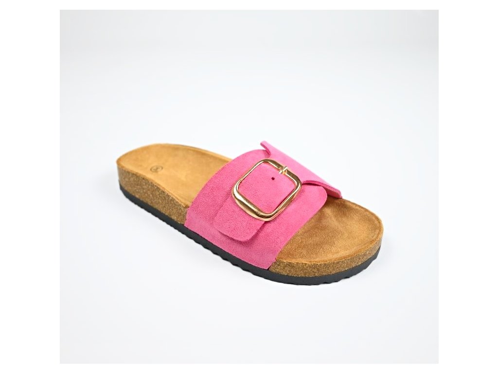 Pohodlné módne dámske šľapky so širšou prackou a s korkovým lemom. Ponúkajú komfort pre Vaše chodidlá vďaka anatomicky tvarovanej stielke z nešmykľavého textilu a korýtka - okraja obuvi ktorá drží nohu na správnom mieste.