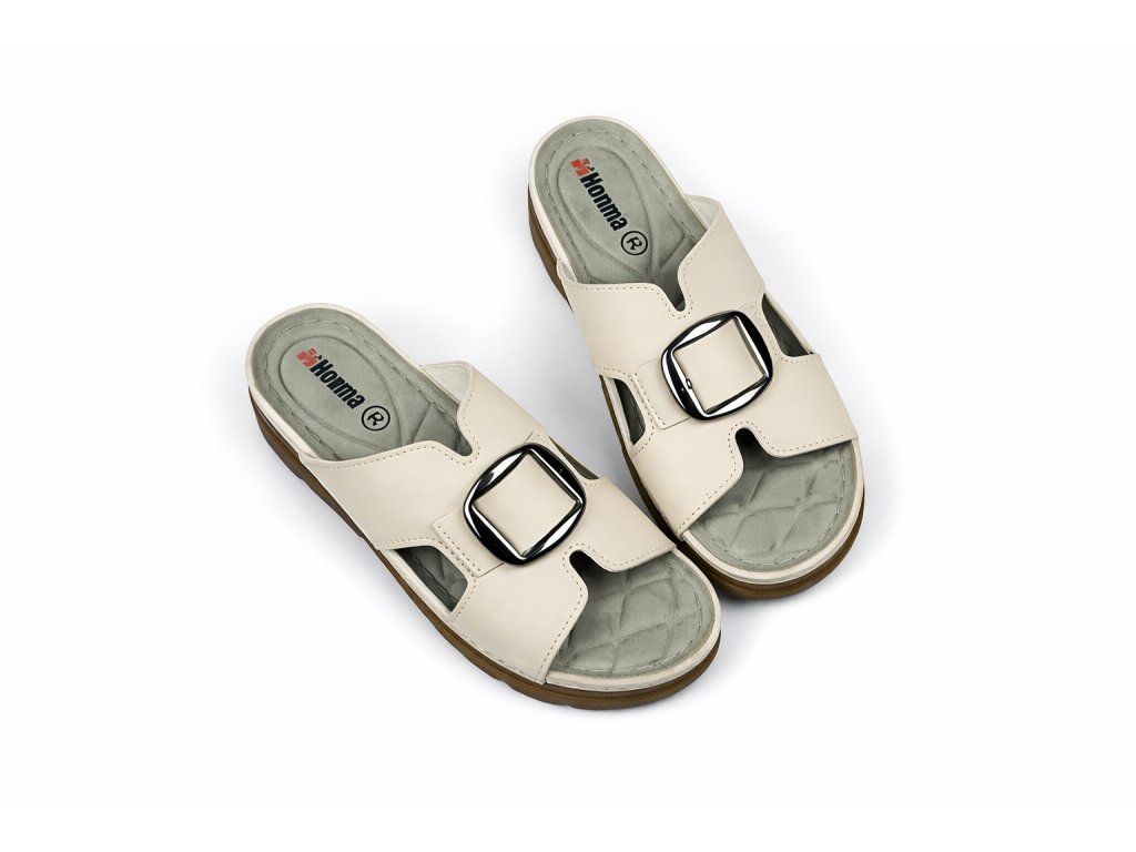 Elegantné dámske šľapky s mäkkou výstelkou z nešmykľavej, netkanej textílie, anatomicky tvarované. Pracka na priehlavku je ozdobná. Pohodlné a štýlové šľapky do práce ale aj na doma alebo na bežné nosenie