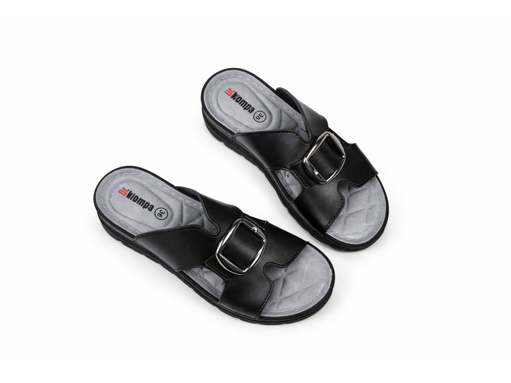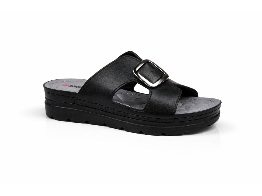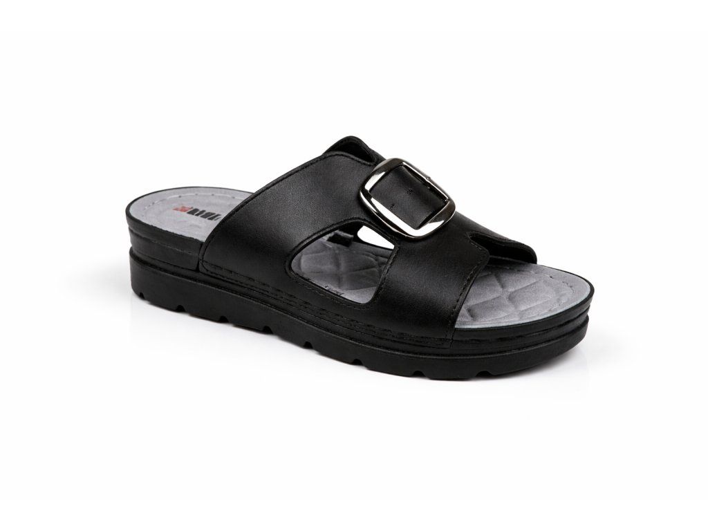 Elegantné dámske šľapky s mäkkou výstelkou z nešmykľavej, netkanej textílie, anatomicky tvarované. Pracka na priehlavku je ozdobná. Pohodlné a štýlové šľapky do práce ale aj na doma alebo na bežné nosenie