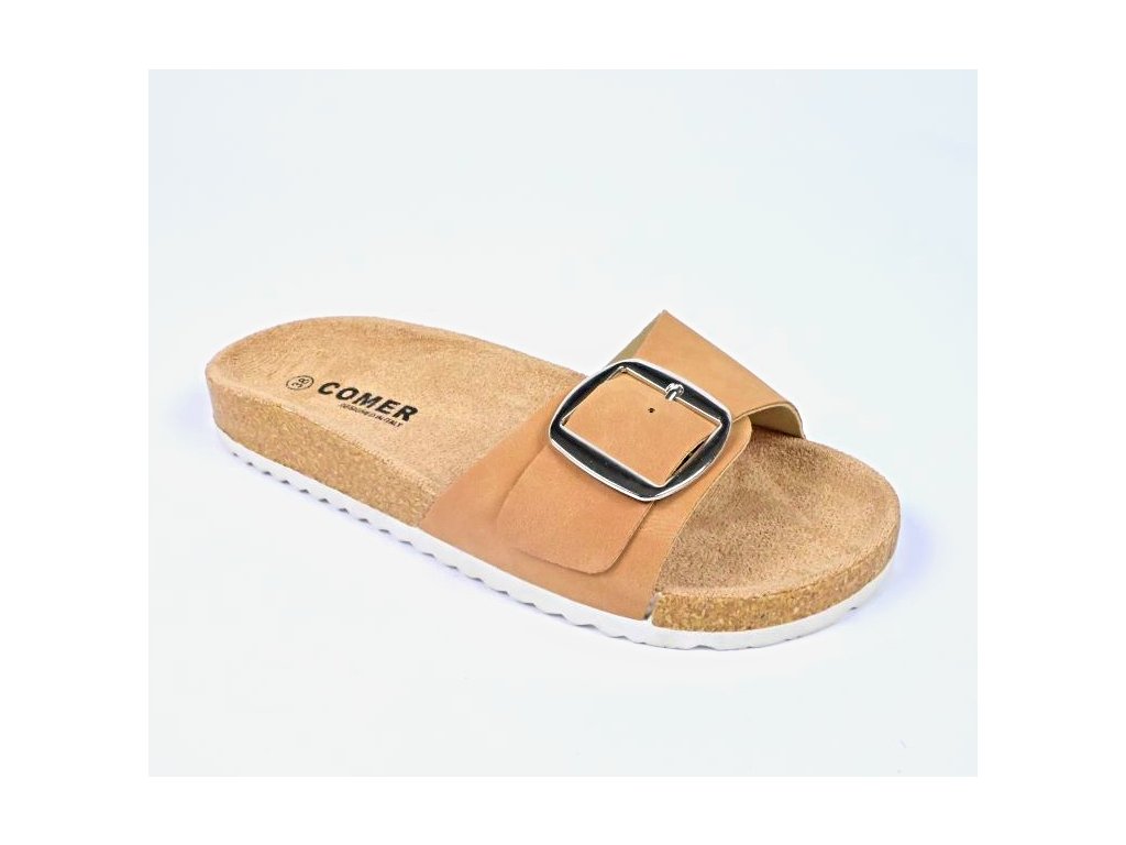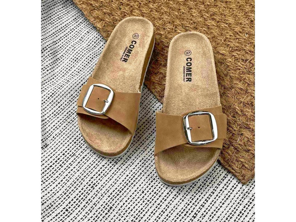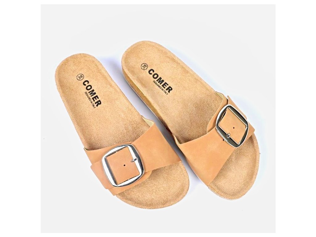 Pohodlné módne dámske šľapky s korkovým lemom ponúkajú komfort pre Vaše chodidlá vďaka tvarovanej stielke a korýtka - okraja obuvi ktorá drží nohu na správnom mieste. Vylepšený, širší remienok na priehlavku, väčšia pracka a stielka z netkanej textílie ktorá je protišmyková a saje pot ... top dizajn !!!