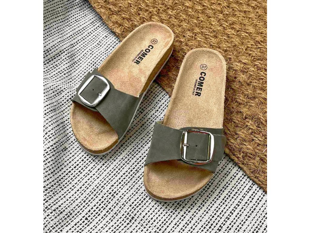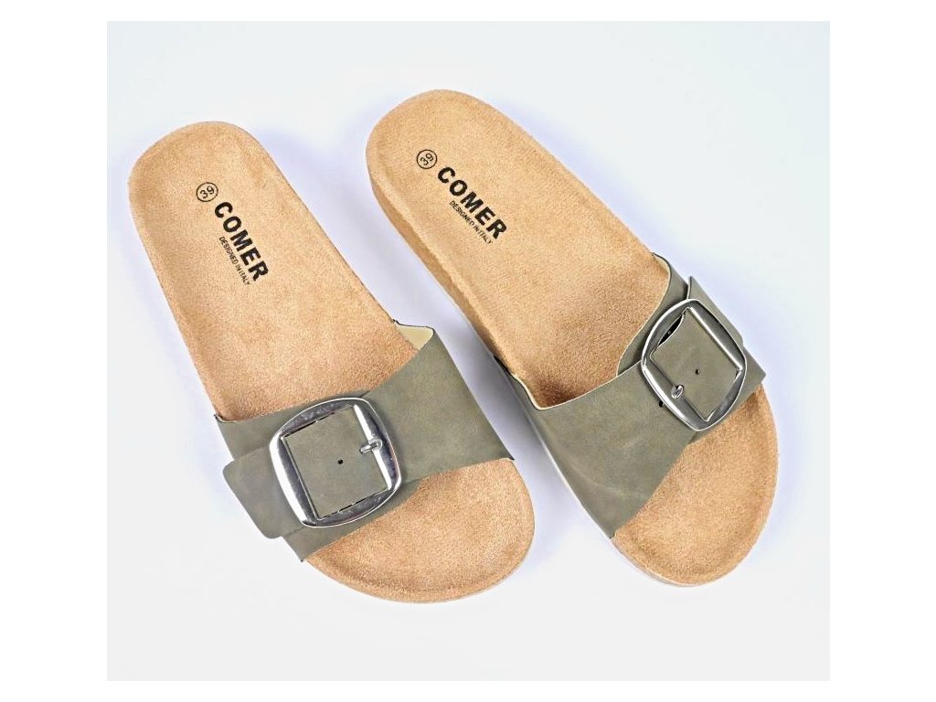 Pohodlné módne dámske šľapky s korkovým lemom ponúkajú komfort pre Vaše chodidlá vďaka tvarovanej stielke a korýtka - okraja obuvi ktorá drží nohu na správnom mieste. Vylepšený, širší remienok na priehlavku, väčšia pracka a stielka z netkanej textílie ktorá je protišmyková a saje pot ... top dizajn !!!