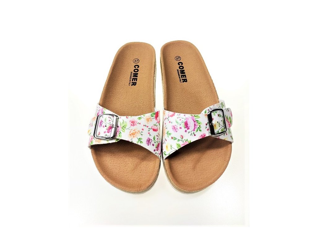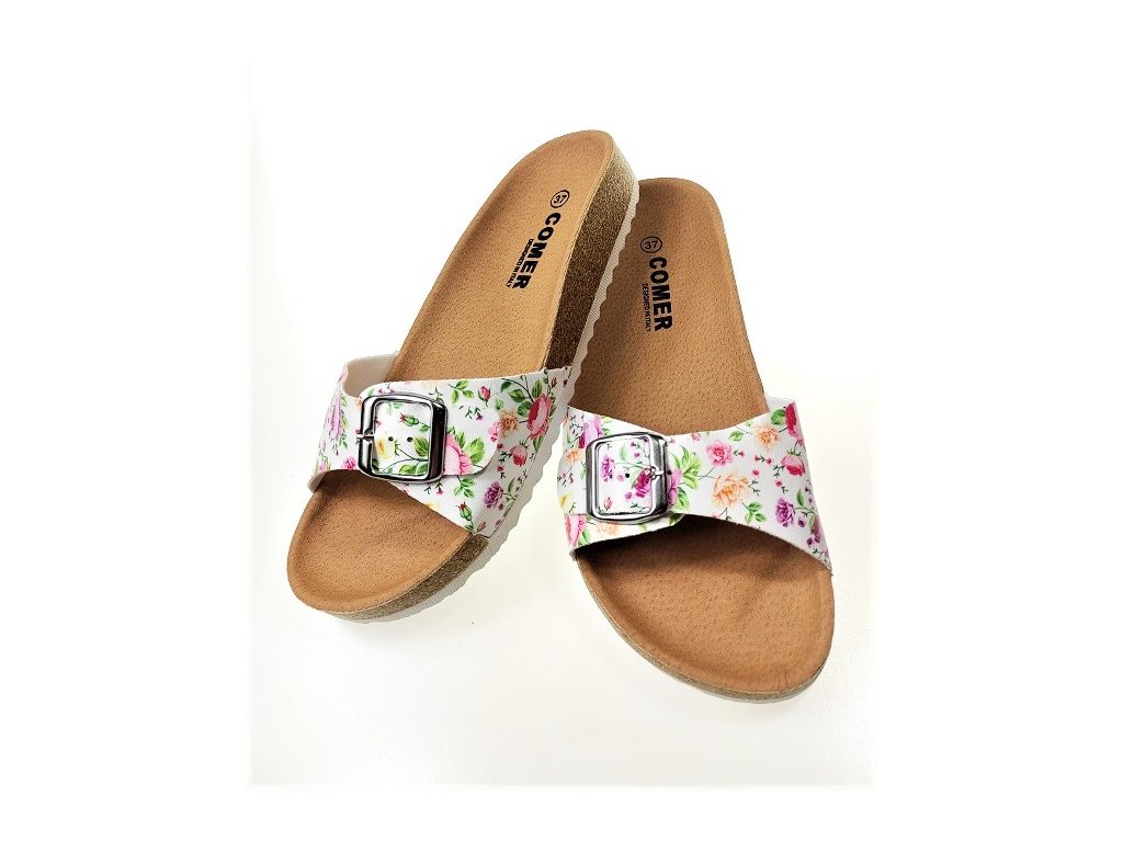 Pohodlné módne dámske šľapky s korkovým lemom ponúkajú komfort pre Vaše chodidlá vďaka tvarovanej stielke a korýtka - okraja obuvi ktorá drží nohu na správnom mieste. Oproti modelom SAR35 majú užší remienok na priehlavku s menšou prackou.