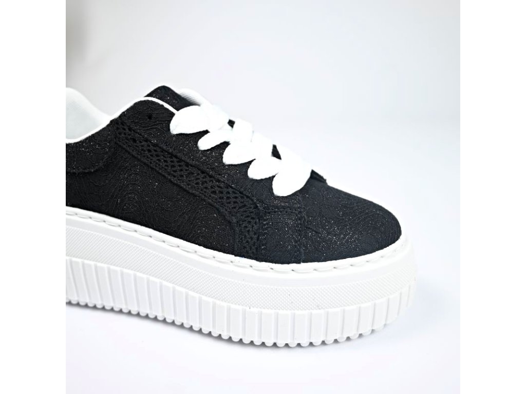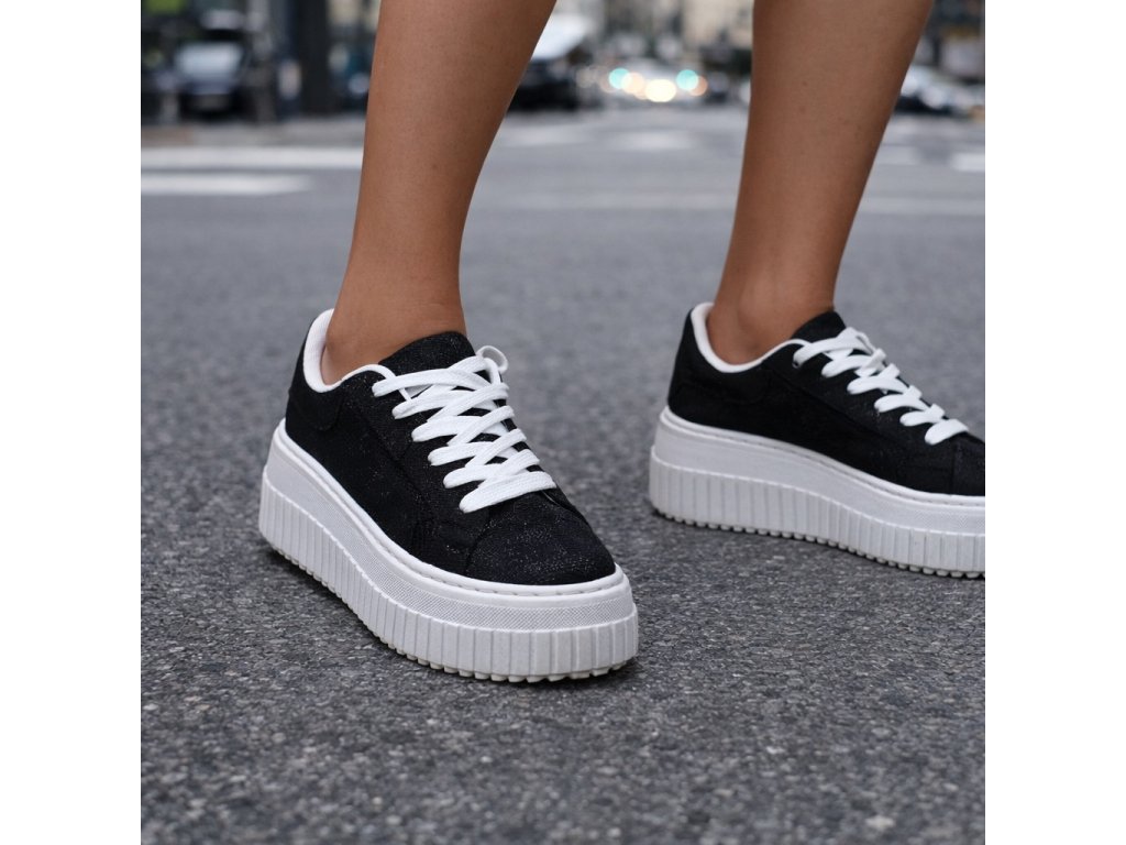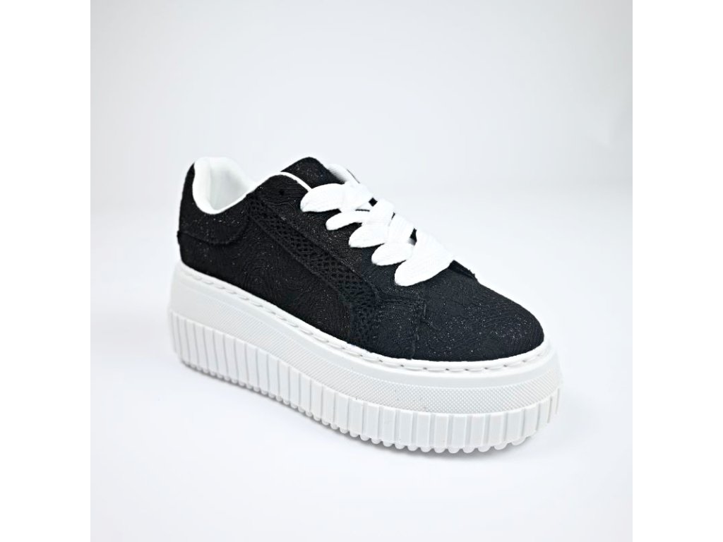 Štýlové, trendy a zároveň pohodlné tenisky so vzdušným textilným zvrškom na platforme. Textilná časť je s perleťovou úpravou na slnku je trblietavé, sedí podľa bežne nosenej veľkosti